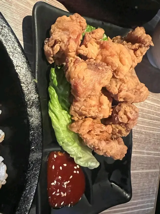 係女人街入面有間韓國餐廳,見唔係好多人等位,今晚一於食韓餐吧menu好多選擇,最後我們order了二人套餐A | $179前菜有豆芽同埋泡菜,不過泡菜有點難食牛肉韓式拌飯面頭有青瓜片、粟米、青瓜絲、肉鬆、木魚和牛肉,配有一碗拌飯汁,拌飯汁有少少辣,牛肉淋和入味,整體味道可以韓式雞肉鐵板燒飯韓式鐵板燒飯夠熱和多汁,雞肉份量多,仲有流心太陽蛋,放係飯上面,可以撈埋一齊食,有鐵板一直熱住食,唔錯韓風一口雞細細件,一口一件,味道正常,雞肉唔會太乾…查看更多