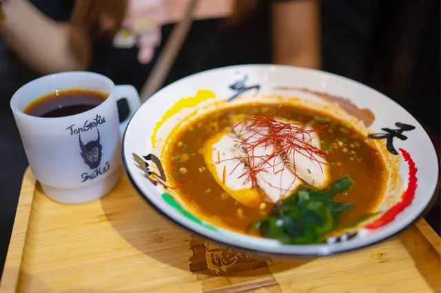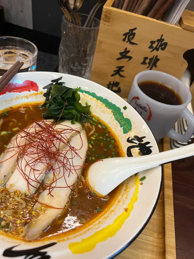 一入到去,店員即刻招呼我哋,首先會問我哋飲唔飲咖啡,因為飲同唔飲會有唔同嘅菜單~我哋都選擇飲咖啡,店員就會向我哋講解店舖嘅概念、當日嘅咖啡豆、咖啡同拉麵互相嘅影響等!一啖咖啡一啖拉麵,味感真喺會有所變化,好特別👍頂立海蝦湯湯底非常濃郁