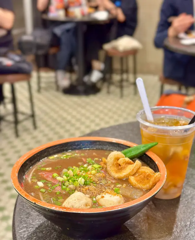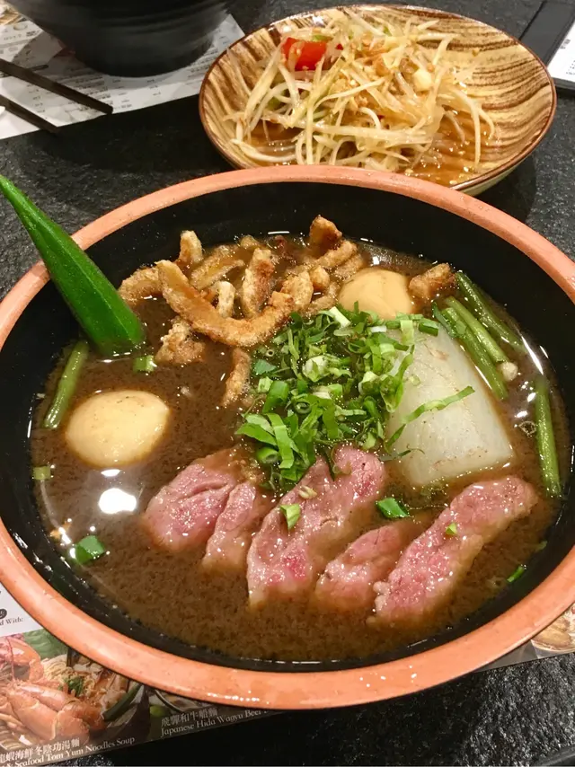 血拼日食完甜品,就帶家姐仔試吓船麵,梗係嚟到「永遠麵唔伏」嘅泰濃麵家姐仔問有咩好食,二話不說介紹咗✨頂級安格斯牛肉船湯 $92牛肉半生熟,啱啱好,家姐仔話湯頭夠濃郁,濃湯配河粉絕對係顏值天花板~ 果然後生係唔需要諗卡路里🥲 家姐仔大讚脆卜卜炸豬皮嗦晒湯好好味,仲話有2粒魚蛋,不過銀芽、秋葵及白蘿蔔就俾晒我食🤣 (另有A5黑毛和牛/美國肥牛)✨卜卜蜆冬陰功湯$92揀咗冬陰功湯底配金邊粉~ 夠辣夠酸,做得好出色!好似Vienn中意食辣+冬陰功嘅「唔叫就走寶」! 都係有秋葵、6隻蜆、1隻青口、1隻蝦、蟹柳、秀珍菇;酸酸辣辣真係好開胃,一陣就食晒~🌟 跟餐龍眼冰 +$28/ 汽水 +$17✨湯底可揀:船湯/冬陰功/清湯✨✨麵底可揀:河粉、金邊粉粉、薯粉、黃麵、湯飯✨Overall 嚟講「食船麵唔伏,非泰濃麵莫屬」!仲有日本廣島蠔 、原隻波士頓龍蝦,啱晒中意海鮮嘅你~仲有上菜速度超快,好似d後生行到餓過頭,坐低一陣就食得,真係幫我呢d媽媽唔少忙🤣 大家試咗未?快D試完話俾我知好冇食😘如果大家中意俾個like支持下🤟🏽 𝗖𝗶𝗮𝗼~..🇹🇭泰濃麵 (尖沙咀) 🇹🇭尖沙咀樂道7號嘉樂大廈地下A舖 …查看更多