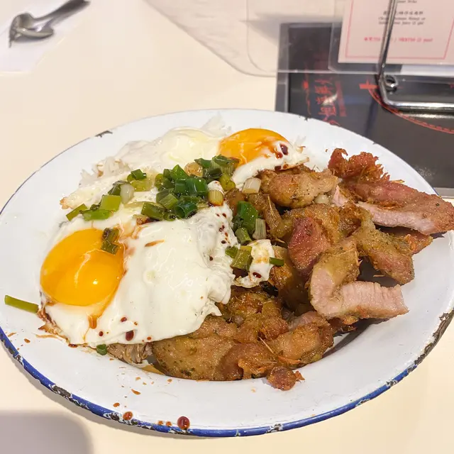 珍姐海鮮火鍋飯店喺中環,係附近番工,嚟試下佢哋嘅午餐,揀咗頭抽蔥油豬扒煎雙蛋飯。餐廳嘅環境雖小但好舒適,氣氛放鬆,令人感到輕鬆愉快。而且服務好親切友善,真係讓人覺得受到照顧。頭抽蔥油豬扒煎雙蛋飯真係好好味!豬扒煎得香脆多汁,蔥油香氣好濃郁,兩隻煎蛋煮得剛剛好,蛋黃流心,同埋配上鬆軟嘅飯,每一口都令人回味無窮。總括而言,佢嘅午餐真係好出色,份量又多。如果你喺中環,而且鍾意豬扒同煎蛋嘅組合,真係值得嚟試下呢間餐廳!佢嘅其他午餐我睇過款都好似好好食,下次會再嚟試埋其他午餐…查看更多