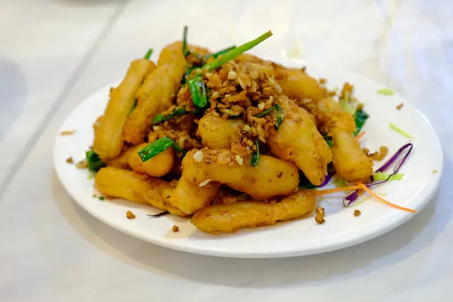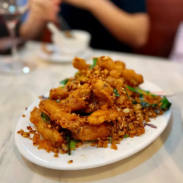 椒鹽九肚魚拼鮮魷$128~單單看隻碟嘅Size 細細碟,相比其他菜式價錢略貴,但細看之下,原來㕑子用上了細一個碼的碟盛,碟大一點,相信感覺截然不同。
