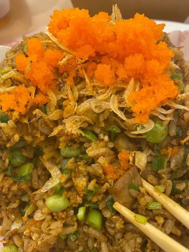 食神炒飯~ 賣相靚, 炒飯有櫻花蝦、蝦仁、青豆、叉燒粒和蟹籽, 材料豐富,炒飯炒得乾身,粒粒分明,夠香又有咬口, 果然鑊氣十足。