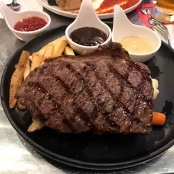 烤澳洲黑安格斯牛西冷配黑椒燒汁 $228 同為Set Dinner,選了五成熟,Rest了才上桌所以無血水滲出,熟成度控制得不錯,黑安格斯比一般的安格斯肉質更細嫩,肉味更香濃。