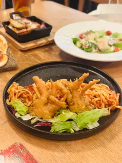 去到紅磡港鐵站過條橋就已經有商場都幾多餐廳可以選擇一入門口離遠已經見到呢間意粉狂熱晚餐有好多款套餐可以選擇~但我地既想自由啲咁揀多啲嘢食又想飲湯同飲品~所以見到只要叫主食就可以加錢升級做套餐!實現晒我地所有願望!🎃香濃南瓜忌廉湯南瓜香甜忌廉濃郁~飲完暖笠笠🧅法式芝士洋蔥湯湯頭香濃同洋蔥嘅甜味做到味道平衡仲配咗塊烤到香脆嘅麵包~滿足🥗香草烤雞凱撒沙律生菜爽脆~雞肉質鮮嫩多汁 配埋凱撒醬好又清新又開胃🥓芝士煙肉焗薯皮薯皮外脆內軟濃郁芝士同鹹香煙肉好夾每啖都好滿足感呢兩份前菜都好吸引~跟住就到主菜啦~🍕美式辣肉腸披薩有前菜又有湯 所以我哋叫左份細嘅一客切左三片 份量啱啱好薄底披薩加香辣肉腸片~口感酥脆~辣味適中~更惹味🦀軟殼蟹配蕃茄濃汁鮮製意粉軟殼蟹炸到外脆內嫩手工意粉吸收晒蕃茄醬嘅濃郁大大碟而且味道鮮美~令人胃口大開!🍰自家製提拉米蘇 好香咖啡同可可味!浸滿炭燒咖啡同香甜咖啡利口酒嘅手指餅層次分明加埋香滑厚重嘅軟芝士口感綿密不膩令人心滿意足,完美的甜品收尾🍹跟餐飲品:橙汁、凍檸檬茶清爽解膩…查看更多