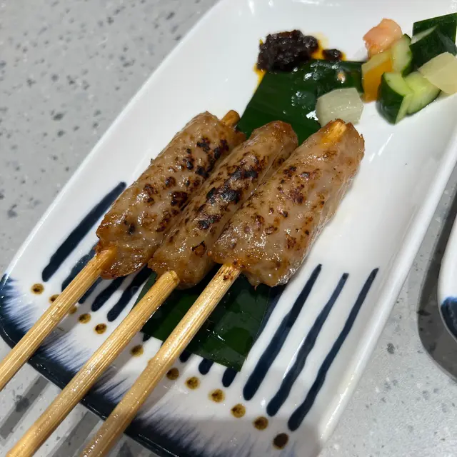 香烤豬肉串-免治豬肉串,有點似台灣腸味特色秘製炸魚餅-食落到幾辣,比想像中辣