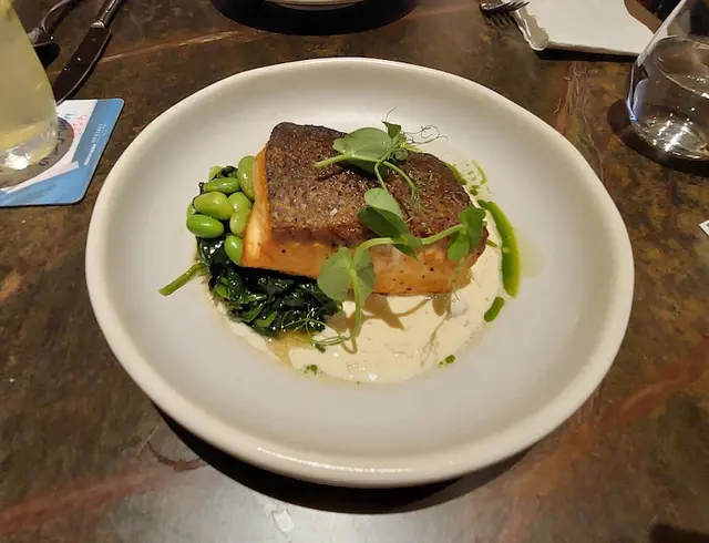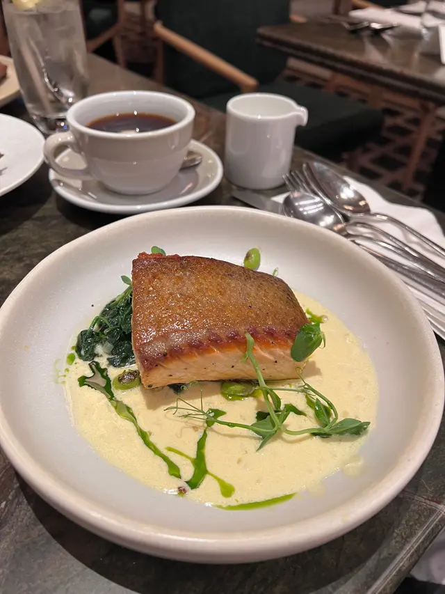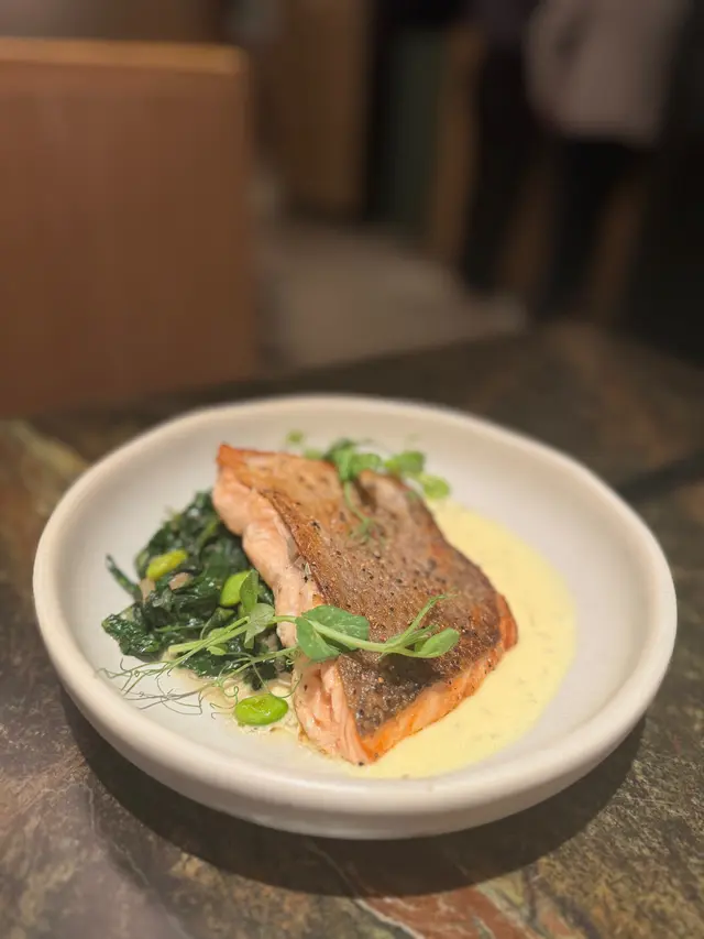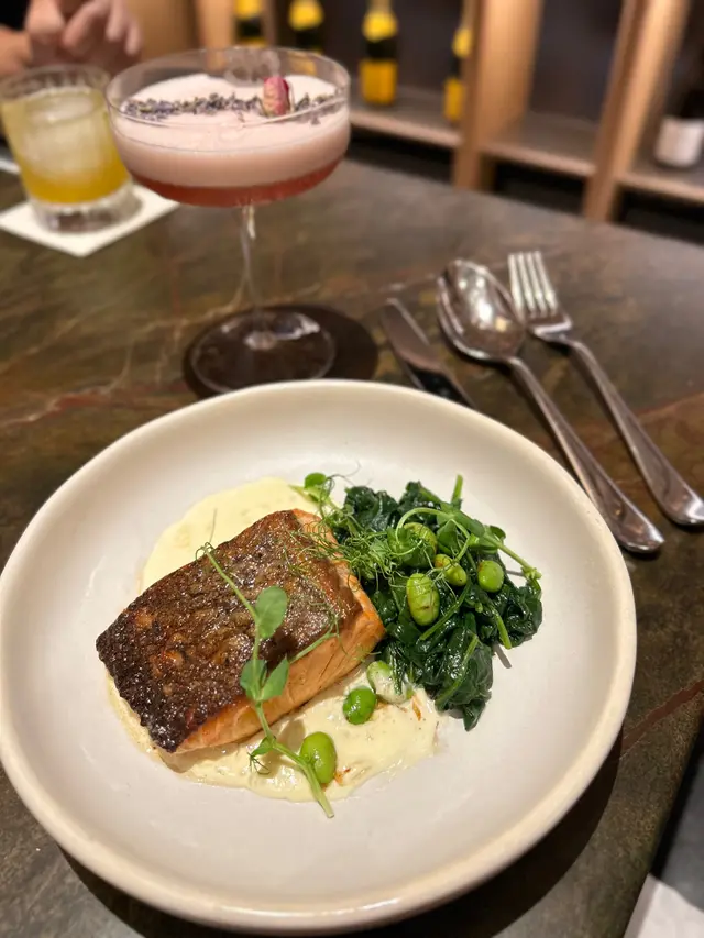 Semi-Buffet $98呢到lunch主打半自助餐+Main,完全可以滿足大食嘅你🤣而且價錢絕對唔貴,性價比幾高🥰自助區主要有沙律例如煙三文魚、薯條、炸物、甜品等輕食,而且refill速度都幾快,感覺食物,特別係沙律菜幾新鮮!餐湯係扁豆湯Seared Salmon Fillet +$138香煎三文魚柳伴菠菜苗及枝豆三文魚煎得外皮香脆,肉質鮮嫩,配合忌廉汁更加美味😋伴碟仲有大量菠菜,可以一解油膩!10oz Ribeye Steak +$208燒紐西蘭10安士肉眼扒配薯條呢塊10oz嘅肉眼扒好重份量😍點了五成熟,外層煎到脆脆地之餘,切開塊扒肉汁都幾多🤣肉質鮮嫩粉粉地,唔會太乾柴柴,侍應仲會主動提供三款芥末醬比客人選擇,法式芥末配埋一齊食一流👍🏻總結:環境優雅,抵食之選!…查看更多