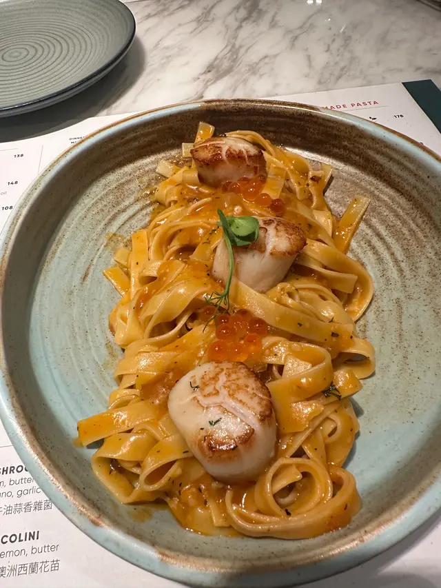 今日27/2 臨放工前就已經同同事商量放工去邊食飯好,上網就搵左「MANO(The L.Square)」由於我係銅鑼灣返工,所以簡左依間分店。簡食物前職員都會好細心咁做小小簡介,佢地主打係手工意粉,所以我哋叫左碟「香煎北海道帶子三文魚籽龍蝦汁扁意大利面」$238聽個名個配搭都覺得好好味,食落去手工意大利粉個面質係有種煙靭感,帶子煎得好香,加埋三文魚籽 ,好夾 好味
