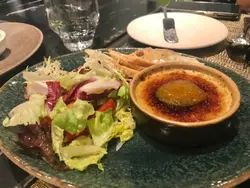 北角匯有多間餐廳,今次帶媽媽來享受一餐精緻的法國菜,希望讓她開心。Set dinner的組合不少,可按自己喜好配搭。以法國菜來說,這價錢不算太貴,最重要是物有所值。在等待前菜期間,店員先送上餐前小食,分別有巴馬火腿蜜瓜多士及餐包。清甜的蜜瓜跟十二個月熟成左右的巴馬火腿最夾,清甜+鹹香達到平衡。至於切片餐包外脆內軟,配酸忌廉不會太飽肚。周打蜆湯用匙舀一下發現湯內有超多配料,如薯仔、蘿蔔、西芹、洋蔥及紅椒等蔬菜粒,跟奶滑的忌廉一起煮得十分軟稔,充分帶出蔬菜的甜味,質感濃厚creamy。蜆本身有四大隻,肥美肉厚,為湯添上鮮味,足料。香煎帶子配柑橘沙律帶子大大粒,外層煎得十分香口,半熟的狀態咬下去充滿著鮮甜味;柑橘沙律中有新鮮多汁的香橙及西柚,酸甜的味道清爽開胃;沙律菜還加了香草調味,是色彩豐富又健康的組合。黑松露忌廉帶子及鮮蝦意大利飯 $298大蝦及帶子都是分別燒熟才放到飯上的。大蝦殼帶焦香、肉質彈牙又有濃郁蝦膏,鮮味十足;燒熟的帶子則鮮甜、口感清爽。意大利米粒粒分明,小粒較實淨有咬口又十分掛汁,黑松露均勻混合,上菜飄香。配菜露荀、數款野菌的味道也突出。香烤肉眼扒配薯條及小甘荀 $398肉眼扒分為兩片上桌,每片都超過兩厘米厚,表面烤到有網格紋鎖住內裡肉汁,是七成熟中心也帶粉嫩,肉質柔軟,牛味濃郁。紅酒汁中的酸味使牛味更突出,是十分合襯的組合。烤翠玉瓜、露荀、冬菇、紅椒等都清甜,不遜色。薯條一大盤另上甚有驚喜,還是熱騰騰的,幼身的構造使其更香脆,要趁熱多吃才對。又海鮮又肉,不喝酒的話喝杯熱檸水也很爽快,還有助消化。由入座到離席,整個用餐體驗都十分舒適。環境即chill又平靜,店員的服務細心友善,食物質素高,物有所值。…查看更多