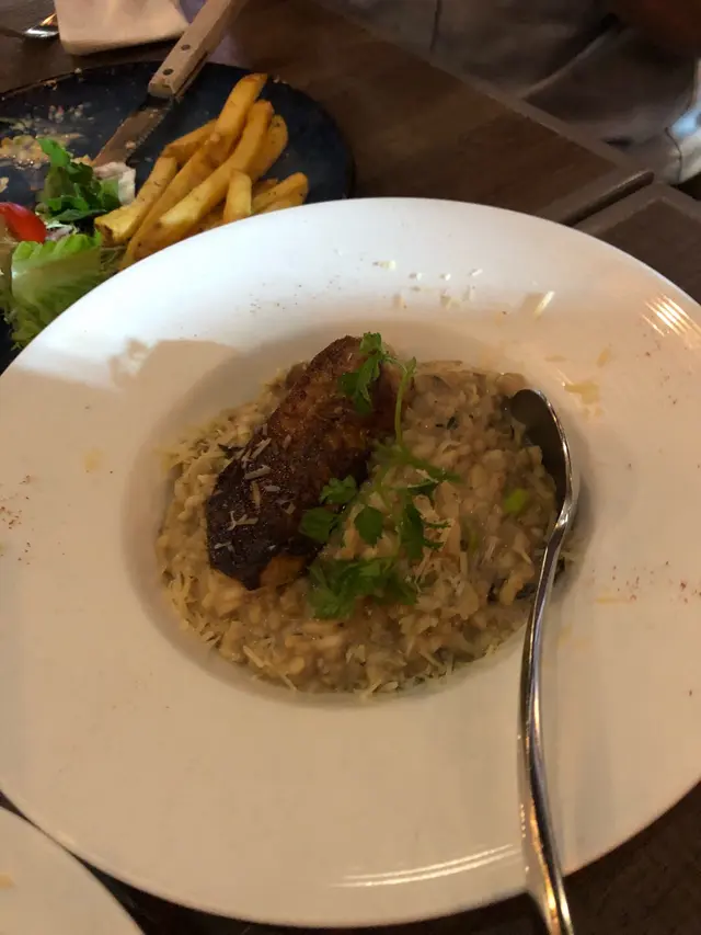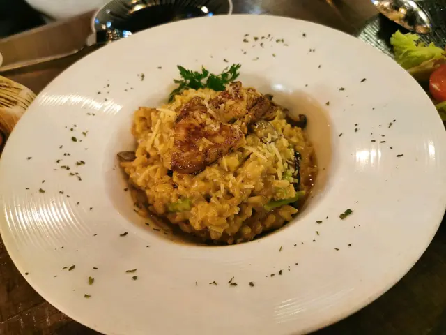呢日同大少、小妹嚟到九龍灣食晚餐。依間餐廳之前都嚟過,嘢食好好味。佢工業風嘅設計,天花吊住一架架飛機,又有燈泡,同埋唔同特色嘅油畫,好有格調!柚子脆皮豬手:豬手外皮酥脆,搭配柚子的酸甜風味,為整道菜增添了新鮮感。豬肉質地軟嫩多汁,完美地融合了柚子的香氣,每一口都帶來令人滿足的口感。香煎蘆筍鵝肝牛肝菌意大利飯:香煎的蘆筍、鵝肝和牛肝菌搭配在一起,為這道菜帶來豐富的層次和口感。意大利飯煮得恰到好處,每一粒米飯都充滿了濃郁的芝士和野菌味。燒羊架:羊肉經過精心的燒烤,外表金黃酥脆,內裡嫩滑多汁。肉質鮮美,帶有獨特的羊肉香氣,每一口都能品味到豐富的風味。燒茄子:茄子經過燒烤後,外皮烤得微焦,內部保持著柔軟的質地。茄子的天然甜味和燒烤的香氣相互融合,十分美味。丁香肉桂檸蜜:以丁香、肉桂和檸檬為主要味道,口感柔軟順滑,甜度適中,而且帶有微微的酸味,讓人回味無窮。…查看更多