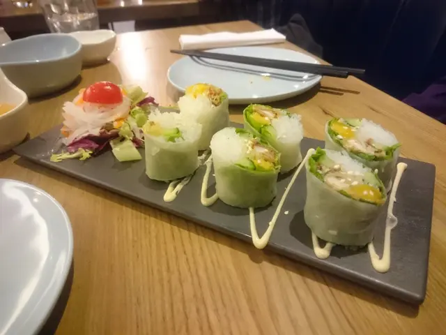 今天難得同老媽撑枱腳,當然試新野啦!見這裡開左間越南菜,經常都有許多人排隊,所以今天走來試試等了約10分鐘,用搭枱形式才有位,菜單設計精美,附有圖片,一定唔會叫錯我地點左牙車快,香芒軟殼蟹米紙卷,脆皮蝦卷撈檬,點一杯飲品正價,第二杯半價:杞子龍眼蜜,薄荷荔枝沙冰牙車快沙律:份量大,椰菜醃得味道酸酸很開胃,配埋花生有咬感,雞肉都不少,不過只有少量海浙香芒軟殼蟹米紙卷: 香芒酸酸的解炸軟殼蟹的油膩,賣相吸引,芒果酸酸的,配上香滿牛油果同香脆軟殼蟹,爽口青瓜,彈牙米粉,新鮮爽口生菜,上面芝麻,口感複雜脆皮蝦卷撈檬:有點失望,脆皮蝦卷外皮唔脆,裡面蝦肉鬆散,幸好花生碎、青瓜絲同酸酸辣辣的檬汁,補了蝦卷的不足兩杯特飲:杞子龍眼:超足料,全杯被龍眼肉同杞子重重包圍薄荷荔枝沙冰:薄荷味同荔枝味濃,冰攪得幼細,如果夏天飲就爽啦!p.s. 不過食完好口渴,唔知加了什麼…查看更多