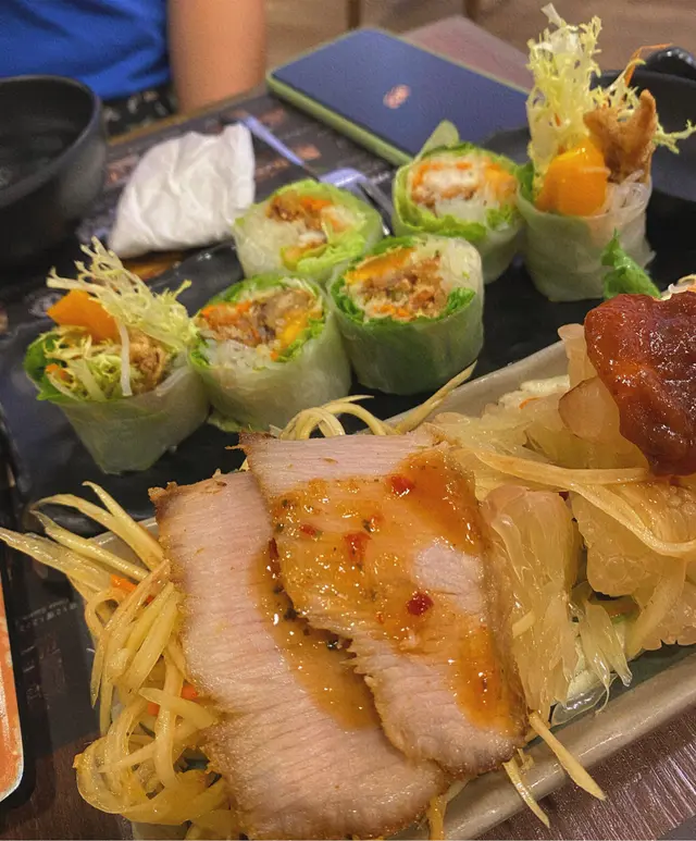 雖然每次去屯門市中心, 個感覺都係好多人, 不過其實除咗多人, 都有好多嘢食嘅, 款式多到可以令你唔需要出市區。今日食嘅就係🔸What The PHO🔸, 星期日晚市時段食都無限制用餐時間, 可以慢慢食幾好。🍴 安南燒乳豬每次去到越南餐廳都會留意吓有無燒乳豬呢個菜式, 因為唔係度度有, 呢度嘅燒乳豬整得好嫩滑, 皮脆肉嫩, 食落仲有好多肉汁, 好Juicy!🍴 燒豬頸肉配濱海及生菜用生菜包住粉皮片, 再包住豬頸肉一齊食, 個感覺好韓式, 食落口感層次好豐富, 每一層都互相配合, 唔會特別搶味。🍴 香芒軟殼蟹米紙卷漏咗單, 不過都堅持食😂 好彩無令我失望, 平時食米紙卷好怕裡面d 配料味道太強烈, 而呢度嘅米紙卷無呢個問題, 軟殼蟹仲大大件, 同芒果互相配合, 夾埋一齊食好清新, 好Fresh!🍴 原個椰青海鮮焗飯視覺效果好豐盛, 焗飯嘅椰香味十足, 有好多椰肉可以連埋一齊食。海鮮方面有蝦, 魷魚同帶子, 全部都剛好, 唔會太老。🍴 香芒糯米飯將糯米飯搓成一個波實在太得意, 賣相吸引。芒果即使唔係當造都唔會覺得酸, 椰漿味道適中, 糯米飯唔會太黏, 好食。整體食物都好好食, 唯獨是員工嘅態度真係麻麻地, 有d 可惜...…查看更多