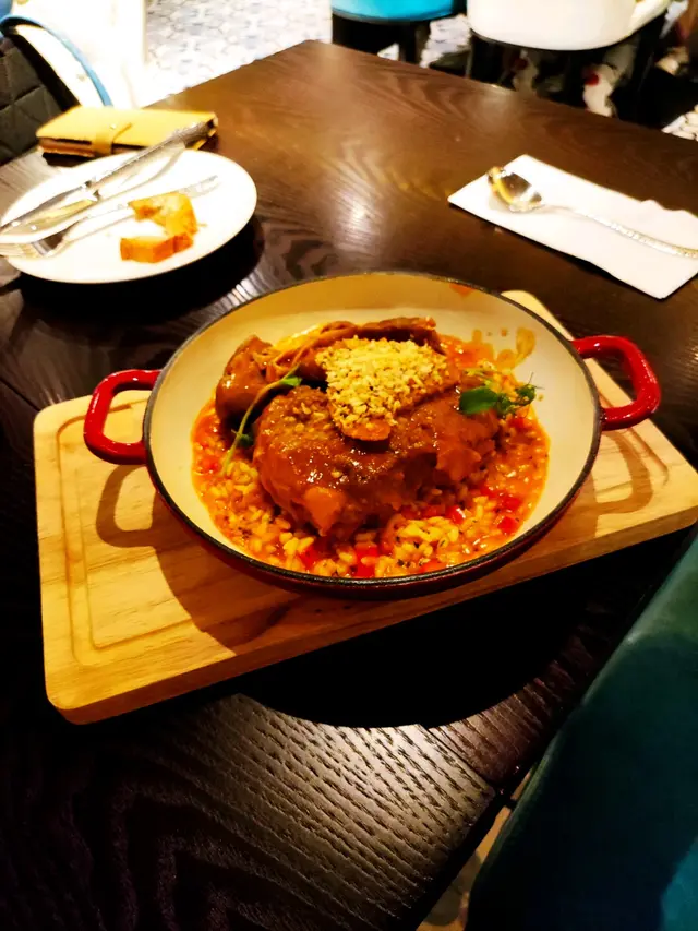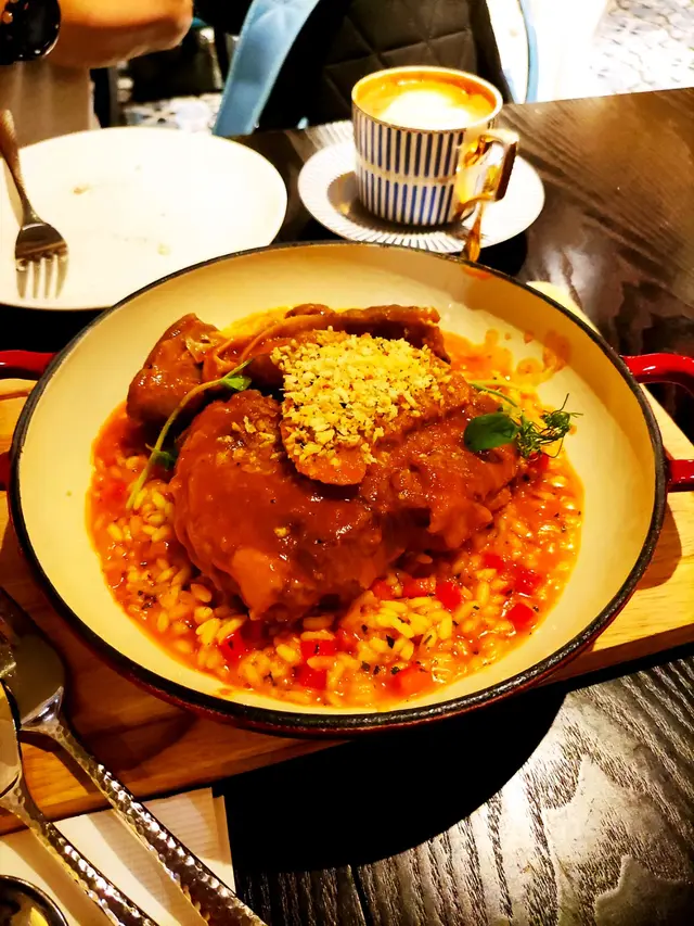 今日難得老公話同我出去拍下拖,最後帶我來到位於饒宗頤文化館嘅呢一間法式餐廳。餐廳外面嘅環境充滿着大自然氣息,餐廳室內設計優雅,藍色白色嘅椅子美觀舒服。🥗菠菜苗蘋果沙律配蘋果油醋汁 $128本來以為只係一個簡單嘅蘋果沙律,估唔到可以整得咁靚,一層菠菜一層蘋果粒咁堆砌著,再配上少許goats cheese,味道係酸酸甜甜嘅開胃沙律。🥘香茅燴澳洲和牛膝配意大利飯 $248上菜時意大利飯在熱辣辣嘅窩裡還在起伏著,和牛膝超軟腍,肉味濃郁,飯粒係硬身少少嘅意大利飯亦帶有檸檬草的清新味道。Drinks: Cappuccino $42 & Orange juice $32係重咖啡味,但唔落糖都唔會苦。橙汁解喝唔錯。…查看更多