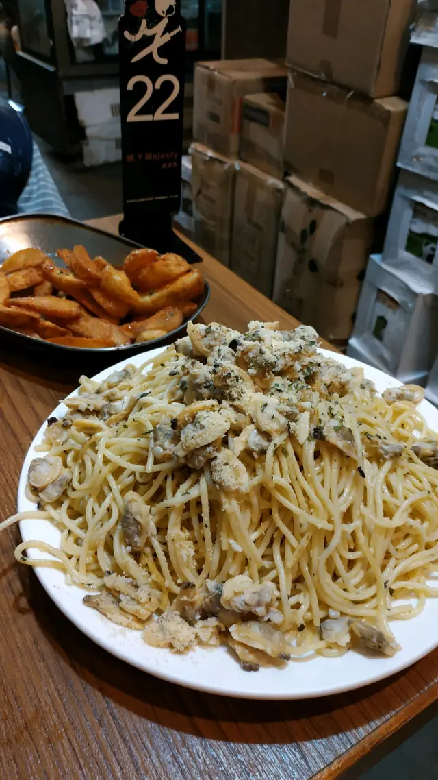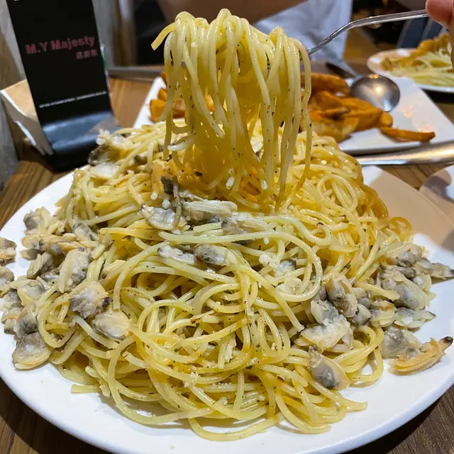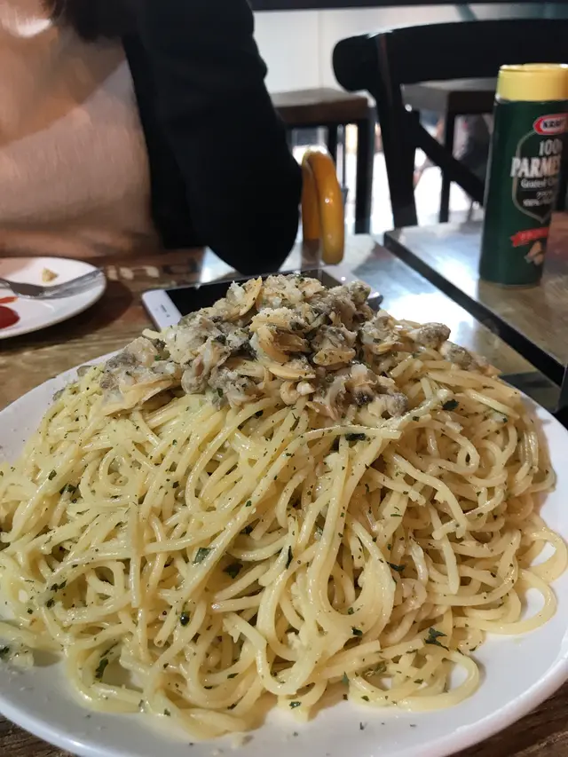 呢間餐廳嘅意粉出名大份夾抵食一直都好想試下 今次終於有機會啦🤩餐廳位置唔算好方便太子站或者深水埗站出都要行8分鐘先到不過都無阻要去試嘅決心!名不虛傳咁大碟!蜆肉份量都唔少份量係一個人食會好飽 但兩個人食就差少少🙈芝士粉本身都落左好多 唔夠都可以去自助區再加~但醬汁略嫌唔太夠 始終麵量好多😛意粉夠爽口彈牙 味道有居家嘅感覺🤣呢個價錢同質素其實cp價相當高!一份有5條 性價比相對較低主要係一條魚糕入面有芝士餡 但唔好期望係拉絲個種😂整體味道不過不失👌🏻————————————————————————總結餐牌選擇相當多 除左意粉仲有捲餅 牛角酥等同朋友黎可以嗌多幾款share試😋主食同意粉係幾抵食嘅 宜家中環都有分店!都可以去試下😉…查看更多