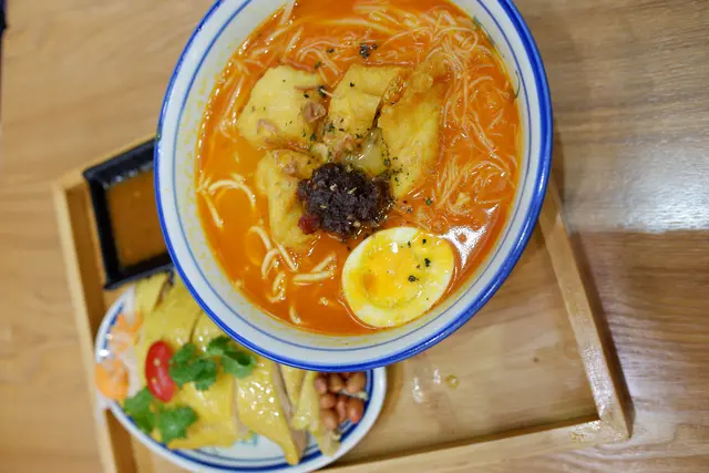 約左朋友仔係銅鑼灣行街,行到攰想食泰國嘢,又想坐得舒舒服服,經過「馬泰」比門面外既食物圖吸引左入去試試。入到去岩岩好係下午茶時段14:00-18:00。我叫了一個下午茶套餐馬來無骨海南雞喇沙 $62。首先無骨海南雞既雞肉很嫩,肥瘦適中,配上特製燒汁和薑蓉,個人較喜歡薑蓉汁。至於喇沙麵則用了兩種麵,分別有米粉和油麵,兩種麵令整個口感多了幾種層次,而喇沙湯底味道濃郁。估唔到下午茶嘅份量都可以咁多。👍🏻👍🏻朋友叫了馬來咖哩牛腩配飯 $66,咖喱味道濃郁,帶有少少辣。牛腩炆得很淋,很入味。馬來咖央多士 (斑蘭味)$32,斑蘭味道很濃,而且麵包烤得很脆,不會烤得很濃。最後還叫了一份甜品,馬泰香芒糯米飯 +$28升級。同出邊食既有少少分別,把它製作成壽司。可能已經過了芒果的季節,所以不會很甜。飲品方面叫了一杯馬來特色手拉茶 +$8,果然冇令我失望,茶很滑,很香濃。朋友叫了一杯泰式檸檬茶 凍飲+$3,可能係泰式茶嘅關係,冇左一種苦澀味,反而有一種清爽嘅味道。餐廳內部有很多插畫和以前用嘅廚具擺設。…Read More