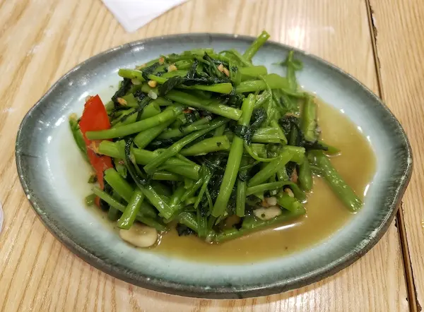 上星期與好友聚會,去她光顧了多次的金泰子泰國餐廳,這裡的泰國料理既正宗又惹味,價格實惠,吃完回味再回味,真是不錯的選擇!餐廳裝修帶有泰式風情,簡約時尚,雖然地方不是很大,但座位之間沒有壓迫感,感覺潔淨舒適。我們來到這裏的時候是中午,所以餐牌上有多款午餐,另有二人及四人套餐,還有頭盤小食、燒烤類、海鮮、特色小菜、炒粉麵飯、沙律、湯類、甜點及飲料品,選擇種類很多。我們點了二人B餐 $238,包括有泰式海南雞半隻、冬蔭功湯/椰汁雞湯、通菜、白飯2碗/蒜蓉包5件 (加$8可轉油飯一碗)、甜品2份。油份甘香,爽口的泰式海南雞,肉質鮮美,完全不乾身,咬起來啖啖肉,雞肉非常嫩滑,沾了泰式辣醬,只是帶少許辣味,自己平時不吃得辣也可吃到,這碟海南雞大部份差不多給我吃光了,滋味無比呢!湯底香辣的冬蔭公,濃濃的香茅味,飲起來酸酸辣辣,很開胃 ; 冬蔭公湯裡面有很多材料,大蝦、蕃茄、秀珍菇、洋蔥等,口感豐富,色香美味。馬拉盞炒通菜,醬料香濃,不會過鹹,味道適中,通菜翠綠爽口,炒得鑊氣十足,很惹味。烘烤脆脆的蒜蓉包,麵包口感鬆軟,外面酥脆,內裡是濃濃的蒜蓉餡料,比起一般的蒜蓉多士這個不會又乾又硬,我較喜歡這蒜蓉包,簡直美味可口。2人套餐甜品是椰汁西米糕,口感軟滑,椰汁香濃,西米黏糯,好吃。冬蔭公湯河 (午市套餐) $43散發陣陣冬蔭公氣味,濃濃的湯蘊含多種泰國香料,湯底帶酸酸辣辣,越飲越開胃 ; 幼條爽滑的河粉吸入濃郁的湯汁,加上豬頸肉的鮮嫩,而且湯裡有蕃茄、什菇、生菜、洋蔥等材料,口感既豐富又美味。午餐奉送的老火湯,火喉十足,湯料有豬骨、黃瓜、南北杏等,濃濃的味道,不錯。午餐加 $3 配椰汁冰,香濃椰汁味,冰冰涼涼,清爽解膩,好飲。…查看更多