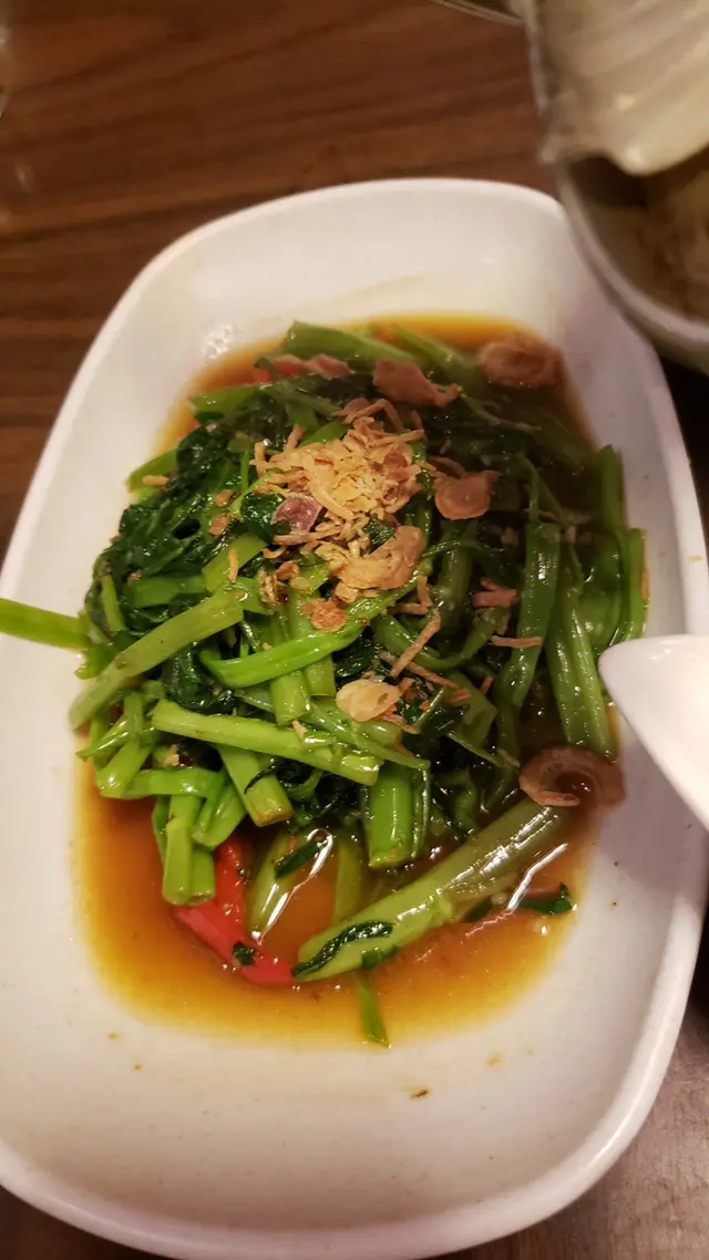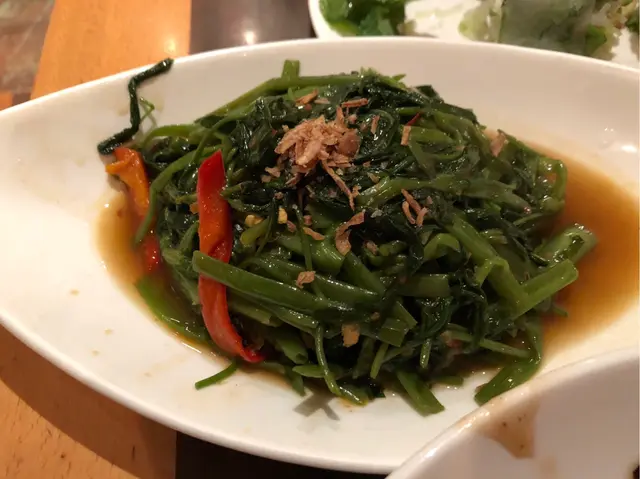 說說食物的味道, 冬陰公湯非常細碗, 幾乎是一人的份量, 出奇地好我喜歡其味道偏酸辣, 無奈鍋底裏的香料渣比較多馬拉盞炒通菜味道可以, 夠鑊氣