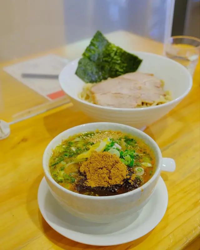魚介豚骨沾麵 $80成set黎到賣相相當好。 湯味夠濃,唔會勁咸,食完冇好口渴。湯唔算杰身(個人喜好鐘意杰身啲,但佢都好好味) ,配有少少柚子食落濃而不膩。麵粗幼度適中有咬口,麵質食頭兩啖覺得略略硬左少少,但放耐左食多幾啖就慢慢balance返。 叉燒薄薄大大塊,肉質非常嫩,好味!個湯入面本身包有兩塊叉燒、半熟蛋。我extra加左叉燒同蔥。辛味噌沾麵(極辛)$90 湯夠辣,如果湯入面加豚角或其他配料冇咁單調就更好。 配料本身包括有叉燒、溫泉蛋、筍。Extra 加左叉燒同筍。 ******************************整體非常好,的確係香港食過最好食嘅沾麵。唯一希望湯個溫度可以keep耐啲就100分。 會想再食~~ ! 員工友善,看得出老闆用心。 …查看更多