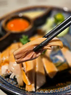 今晚在天天海南雞飯餐廳用餐,感覺菜式皆有驚喜。除了招牌的天天海南雞飯,其餘餸菜如九製陳皮火焰黑金叉燒、黃金雞脆骨、黑磨豉醬炆豬手、魚腐炆絲瓜、黑醋油蘿蔔糕、椰奶炸龜苓膏,以及臭豆腐,都值得一試。天天海南雞飯以其皮薄肉嫩、雞肉鮮嫩多汁著稱,搭配特製辣椒醬、新加坡進口黑醬油與蒜醬,雞油飯更吸收雞肉精華,風味濃郁,是不容錯過的招牌菜。其他菜式多帶有新加坡特色與創新口味,讓人滿足且有驚喜感。特別推薦九製陳皮火焰黑金叉燒,帶有陳皮香氣且製作考究;黑磨豉醬炆豬手口感豐富,魚腐炆絲瓜清淡鮮美,黑醋油蘿蔔糕香酥且帶微酸甜;椰奶炸龜苓膏創意十足,帶出椰奶與龜苓膏的獨特融合,臭豆腐外酥內嫩,味道夠特別。整體而言,天天海南雞飯不僅主打海南雞飯,其他菜式也都呈現出新加坡風味與創新,適合和朋友慢慢品嘗,享受豐富且多元的用餐體驗.之前只是叫了海南雞飯外,今晚同朋友一起來,叫的所有餸都感覺有驚喜。叫了天天海南雞、九製陳皮火焰黑金叉燒、黑磨豉醬炆豬手、魚腐炆絲瓜、黑醋油蘿蔔糕、椰奶炸龜苓膏和臭豆腐。