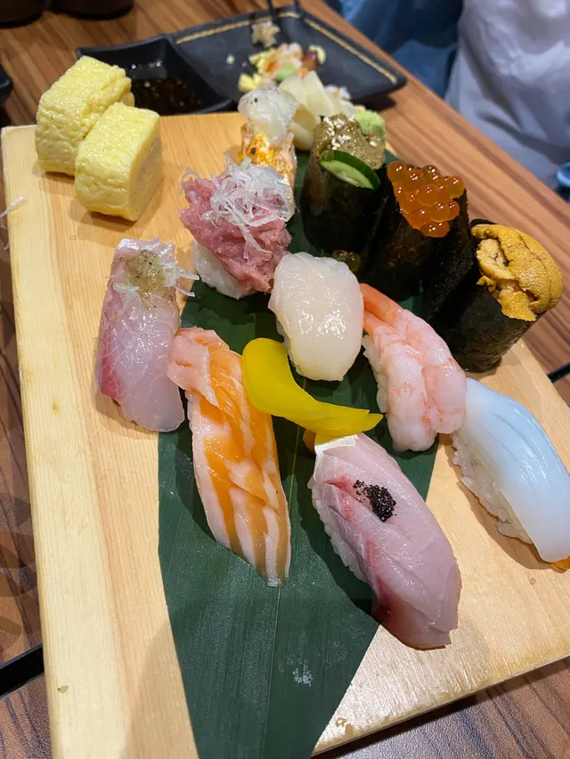之前有食過西環店 覺得高質啲今次嚟大角咀食晚飯平日收工walk-in 唔使等位叫咗一個鮮壽司set$128 十二件,有海膽,蟹膏、三文魚子、黑松露油甘魚、帶子等等呢個set係幾抵食,油甘魚爽口新鮮海膽都唔腥,但就無特別鮮甜另外散叫咗啲卷物甜蝦他他牛油果卷 同彩虹卷前者牛油果同甜蝦味道唔錯後者魚味唔太出,沙律醬有啲搶燒油甘魚鮫無燒到好乾但無特別juicy或好味有少少失望燒原條明太子,整體偏腍,外皮唔焦脆食材新鮮,但烹調上有啲美中不足…查看更多
