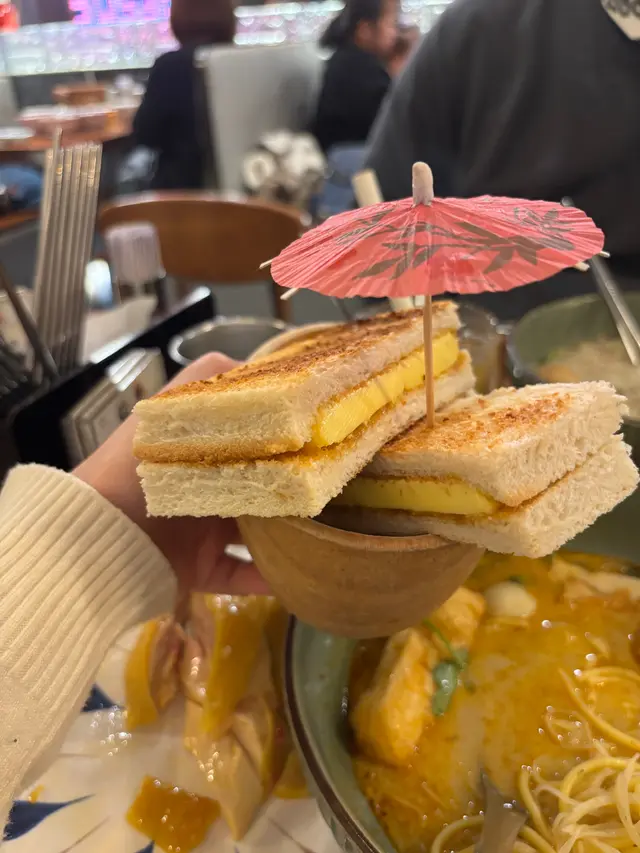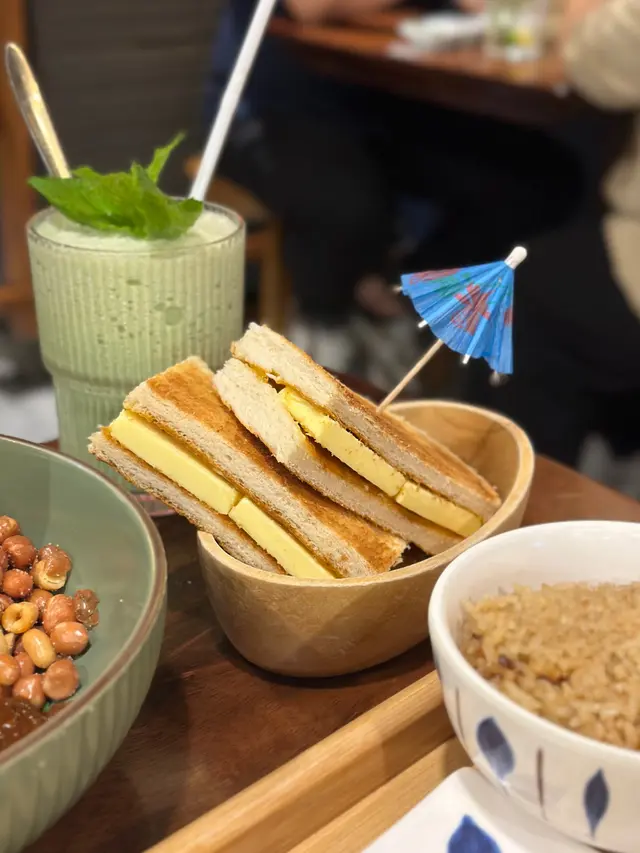 鮮油咖央多士($30)淨叫要$38,下午茶餐有埋嘢飲先$30,我唔會同啲錢過唔去嘅。兩片正常厚度嘅多士(室溫,脆身),內裡塗上不少咖央醬(偏甜,微酸),加兩塊厚切鮮牛油,一開二兩件,夠哂邪惡。招牌海南雞飯($65)跟餐奉送冬瓜湯,加咗$10轉輕怡排骨茶。湯底好重胡椒味,少辣,無乜藥材味;有兩舊排骨,肉質紮實,唔會好嚡;有兩件豆卜,索哂湯汁。海南雞份量適中,雞皮爽口,無咩肥膏,雞肉尚算嫩滑。有齊三色醬,黑醬油帶甜杰身味濃、紅醬酸辣、薑蓉普通。油飯,要咗多飯(但都唔算好大碗),乾身,有油香味,味道不錯。地道白咖哩魚餅扎肉老鼠粉($58)白咖喱湯底唔太辣,夾雜香茅味,味道唔算太濃厚,不過不失。老鼠粉份量適中,長度合適,唔會一夾就斷,幾有咬口。配菜有魚餅(兩塊,少辣)、扎肉(三片)、豆卜(兩件)、芽菜、通菜。開心果椰子奶昔(+$12),飲唔到開心果味,椰奶就好濃,重有少少椰絲。凍生椰拿鐵(+$3),帶椰奶味嘅咖啡。熱鮮檸檬薏米(+$0),除咗薏米,仲有兩片糖冬瓜。…查看更多