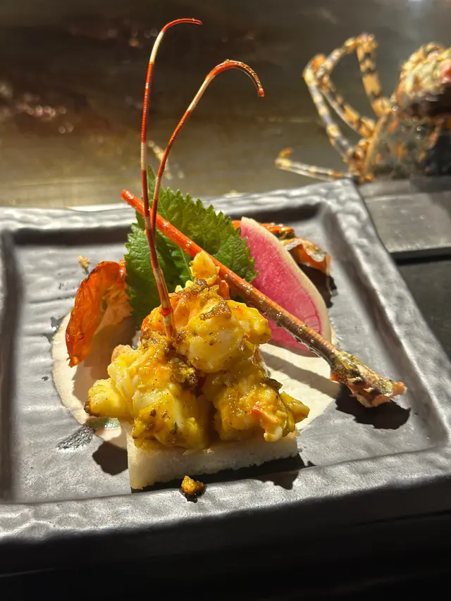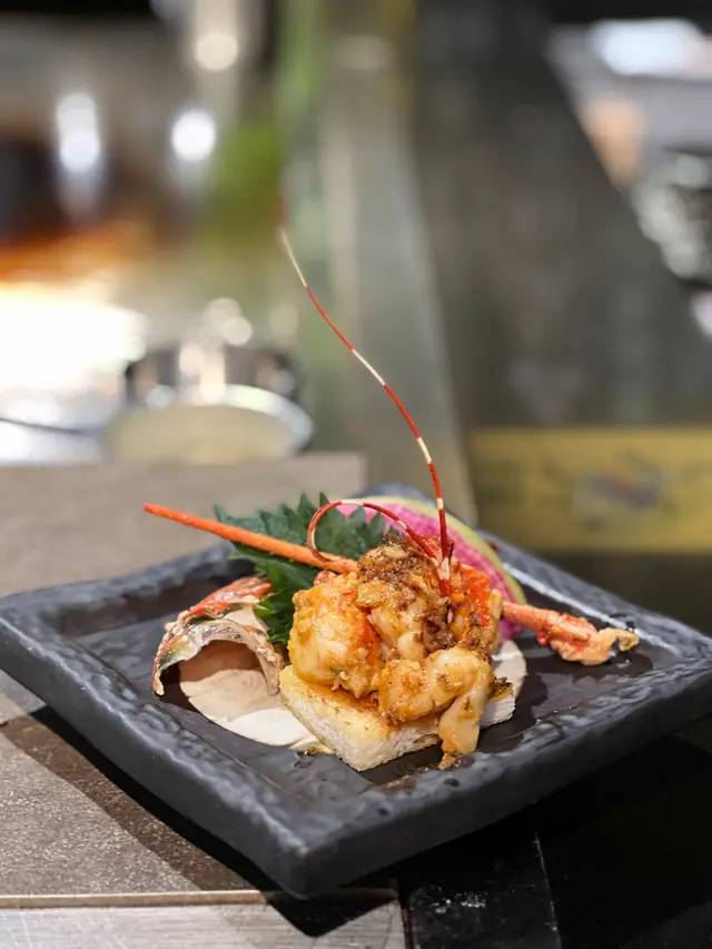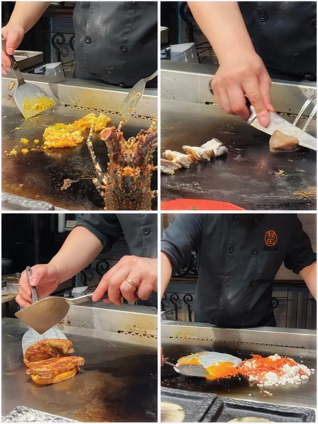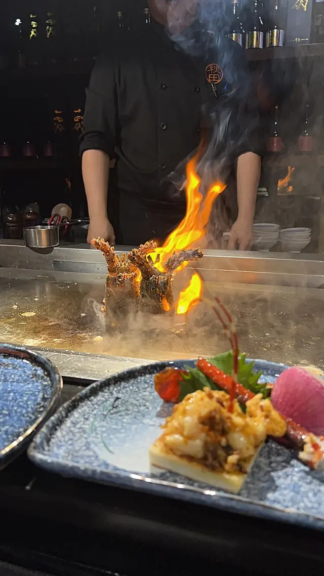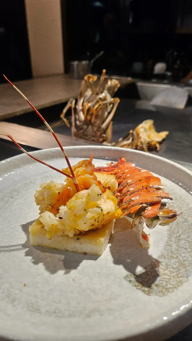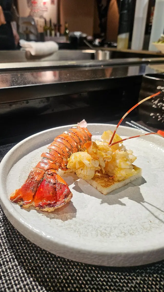 聞說已久身邊好多朋友話這間超好味的鐵板燒,終於嚐到。食材新鮮,調味細緻,的確讓人驚喜,完全可以用高質好味來形容。店內環境寬敞,客人可以圍爐欣賞廚師的烹飪技藝,特別是火焰龍蝦頭的表演,視覺體驗非常震撼。秋田二人前套餐 $888/位季節沙律用上沖繩水雲口感黏滑,搭配酸甜的醬汁,開胃又美味。魚籽鵝肝蒸蛋蒸蛋滑溜,配上鹹鮮的黑魚籽和煎香的鵝肝粒,脂香四溢,十分好味。季節時令海鮮北海道鮮活帶子大粒,用牛油煎香,搭配柚子胡椒和黑魚子,包住食用,味道層次豐富,超好食。鮮活時令龍蝦青龍蝦新鮮,肉質細嫩,搭配龍蝦膏、牛油蒜蓉醬汁,與香脆牛油多士同食,完美搭配。之後還有即席的火焰龍蝦頭表演,儀式感十足。龍蝦清湯用龍蝦頭煮的清湯味道清甜。原隻鮮活南非鮑魚鮑魚鮮嫩彈牙,搭配昆布忌廉醬汁,鮮味十足,口感creamy。香煎頂級鵝肝厚切鵝肝表面煎至焦香,外脆內軟,入口即溶,配上香脆牛油多士,搭配黑醋和菠蘿,減低油膩感。鹿兒島霜降和牛薄燒和厚燒薄燒雪花和牛包住洋蔥、香蔥和乾蒜片,油脂香濃,肉質柔軟。厚燒和牛口感軟腍,牛味濃郁,配鹽昆布更美味。秋田炒飯蛋炒飯粒粒分明,加入櫻花蝦乾、香蔥、煙肉和甘筍,水準不俗。炒野菜炒雜菜口感爽脆,簡單精選甜品銅鑼燒夾住紅豆餡,香甜可口,還有抹茶和雲呢拿雪糕,為今晚劃上完美句號。飲品巨峰乳酸和桃乳酸,兩杯都好飲,前者甜,後者清香。…查看更多