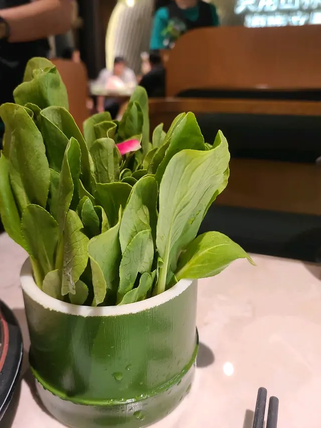 選配了這個鍋湯底,一邊椰子味和酸辣味,少見,椰子湯底,飲了一口,好清香椰子甜味,酸辣湯底,平均酸味同辣香味,有特色,雞選用了上海文昌雞,待應幫我們將雞放入鍋,枱放了1個沙漏,沙漏倒完了,先吃得,雞身特別軟霖爽滑,一口嘴嚼到,本有濃厚鮮香雞味,獨有加多份椰子鮮香味,真係4個椰子1鍋湯,不加1滴子,就算少水,仍保留到好清甜椰子香味鮮活水培菜