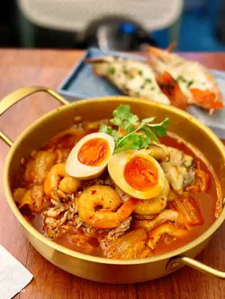 今日來到位於中環歌賦街這間小店魚蝦蟹,他們賣點是無添加味精,食材又新鮮,他們最近推出了晚市二人套餐$498(免加一),已包括2款前菜、1款主食、1款鍋物、2款飯麵、是日甜品,CP值超高😍🤩凡惠顧二人套餐,即送蒜蓉開邊蒸大蝦兩隻,大大隻,肉質彈牙又鮮甜。🥒蒜泥青瓜拼雲耳爽口的青瓜雲耳,配上滿滿的蒜泥,是最絕組合。味道上拿捏得剛剛好,不會太過濃味。🍅酸甜開胃話梅車厘茄心機之作,每一粒車厘茄已經去皮,而且用話梅糖水和花雕酒浸足兩日。味道偏甜,帶有一些話梅的味道。🐟鹽焗烏頭魚 +$20店員會好細心幫你去皮拆肉,所以不用擔心要怎樣處理。烏頭肉質肥厚肉嫩,香茅味十足,配上特調的醬汁更突出魚肉鮮甜。喜歡吃辣的朋友,可以加一些辣醬,更加惹味。🍲鮮濃蝦湯泡菜鍋 +$20超級足料,包括海蝦、魚片、墨魚餅、豬頸肉、肥牛、金菇、什菜。重點是湯底,蝦味濃郁而且不咸不辣。🦐蝦籽蝦油撈麵滿滿都是蝦籽,加上濃郁的蝦油鮮味,真是極邪惡。🧄香蔥蒜油撈麵濃郁的香蔥蒜油,味道拿捏得剛剛好,不會太過濃味。🍫是日甜品 - 朱古力泡芙…Read More