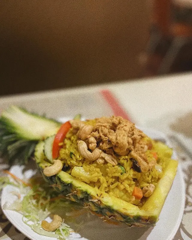 喺荃灣街市街發現咗間幾唔錯嘅泰國菜,由泰國人主理,價錢親民👍。今次試咗幾款菜同飲品,款款都好食,埋單唔使$400,好抵食,推薦!【鮮菠蘿海鮮炒飯 🍍】一上枱就見到份量幾足,夠兩個人分享🥰。飯炒得幾有鑊氣,顏色金黃,食落乾身。海鮮料都幾新鮮,加埋肉鬆同菠蘿粒一齊食,味道同口感都唔錯,鮮菠蘿嘅甜味令成個炒飯更開胃😋。【泰式海南雞 🍗】海南雞賣相唔錯,雞皮金黃,食落爽滑唔肥。雞肉嫩滑😍。點埋佢哋嘅泰式薑蓉或者少少辣汁,味道更加好。【雙色芒果糯米飯 🥭】有白糯米同紫米兩種,口感煙韌,咬落軟糯。芒果幾甜,配埋椰汁一齊食,味道剛好,作為飯後甜品幾滿足🌟。【鹹魚茸炒芥蘭 🐟】呢個係幾有驚喜嘅選擇💡!炒得幾有鑊氣,鹹魚茸嘅香味好突出,但又唔會太鹹,反而帶到芥蘭嘅爽甜。食落脆口,好送飯🍚。…查看更多