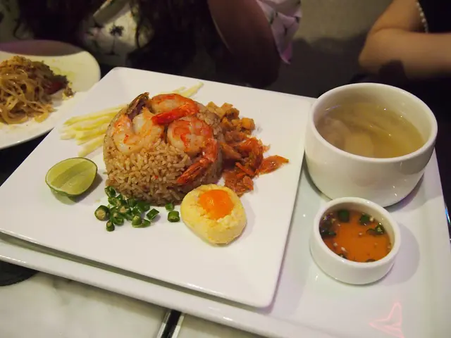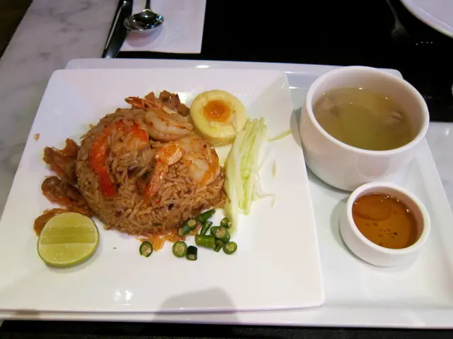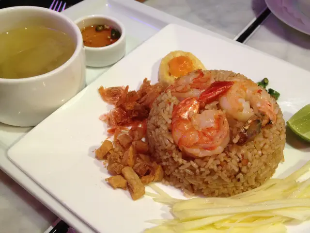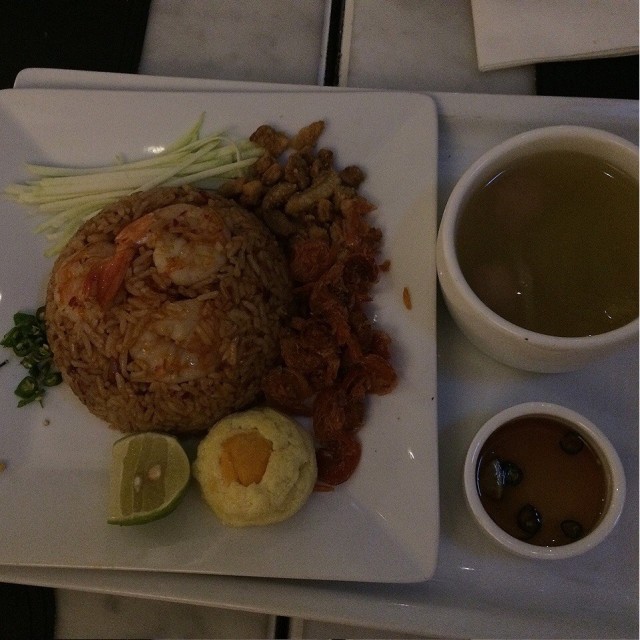 薯條配酸忌廉同茄汁,外脆內軟,但係並無咩特別之處,不過不失鮮蝦辣椒膏炒飯味道唔錯,材料有大蝦丶蝦乾丶蒜乾等等,所以炒出黎味道好香好惹味。味道有少少咸,但係唔會話太咸,加埋少少青檸汁中和味道好Match!配飯重有一個合掌瓜的客湯,味道清清地,夾埋個飯食個味道都幾平衡。咖喱牛腩煮得好腍好入味,但係辣味如果可以重少少會比較岩我。薄餅熱辣辣唔會好Un,配咖喱都幾好味,但係味道有少少似大X活咖喱...芒果糯米飯味道唔錯,芒果肉夠甜唔會太酸,椰肉食落口都幾新鮮。但係糯米飯質感比較硬唔夠軟熟,不過味道都唔錯,都算合格