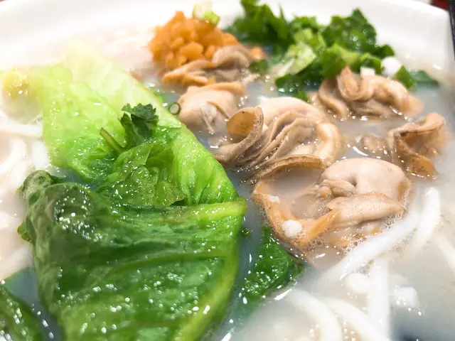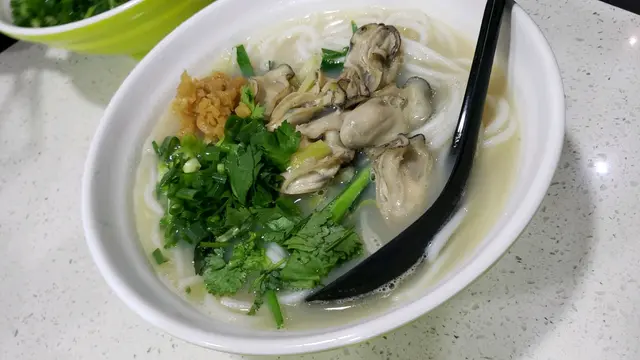 鮮蠔湯米線$58(餐飲另加$8)~一共有6隻鮮蠔,蠔味晤算濃,但湯底都好清晤令人口渴,有店中自家製菜蒲、青葱、芫荽及芽菜,讓碗米線份量更豐富