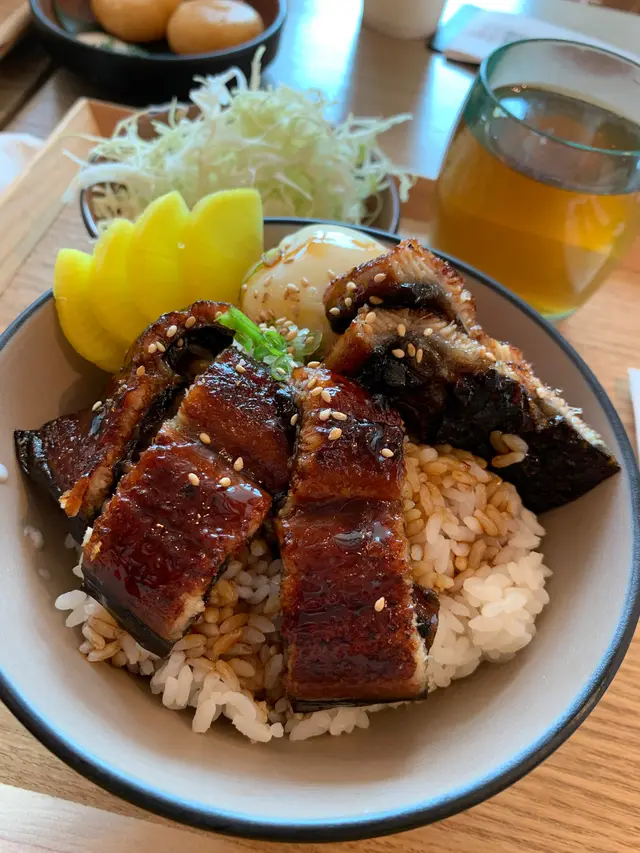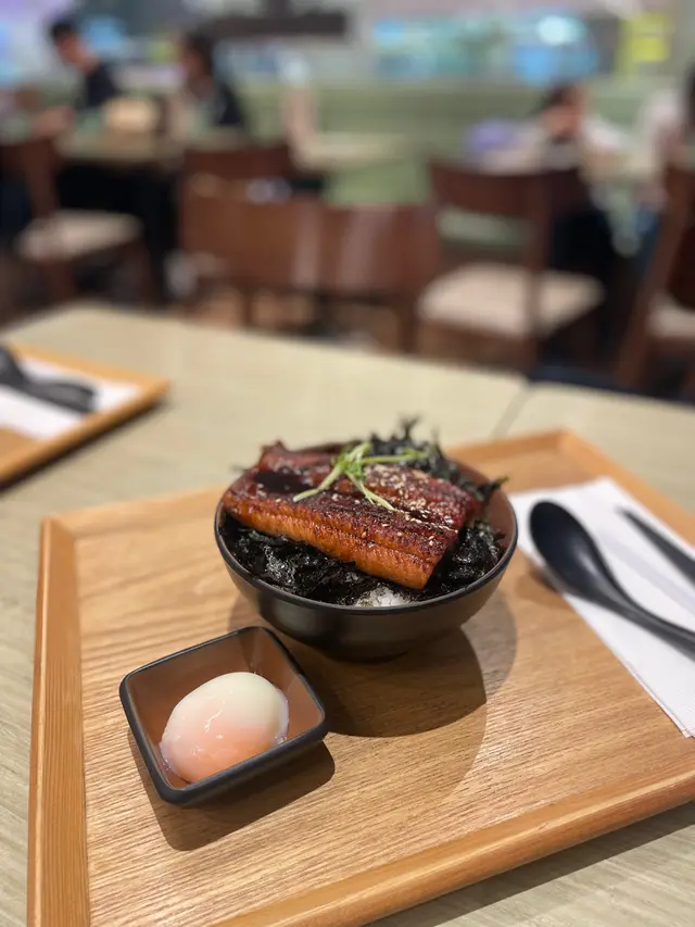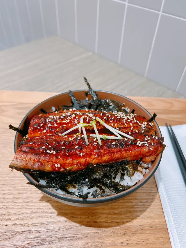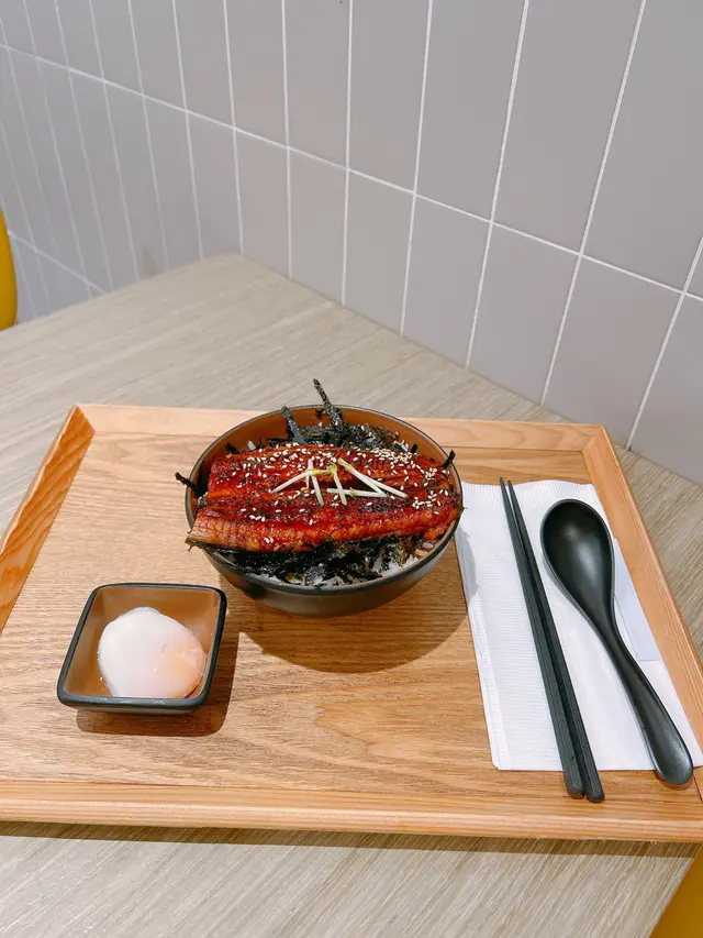 【鰻魚丼】鰻魚經過烤製,外皮微焦帶有焦香,內裡鮮嫩多汁,刷上日式醬汁後鹹甜適中,搭配香氣撲鼻的日式米飯、紫菜和溫泉蛋,多重口感和滋味。