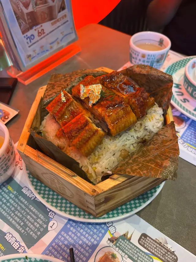 琴日同朋友們喺灣仔完咗活動肚餓想搵嘢食,就揀咗佢去碰吓運氣,原來佢收12點!平時午餐嘅時間好多人排隊,唔會食到。門面裝修已經好靚,日頭行過去嘅時候冇咁明顯。入面亦有港式燈牌嘅元素。佢fusion嘅地方係仲有特飲或者酒精飲品可以選擇。我哋第一個嗌咗鮮蝦腐皮卷,大家食嘅時候要小心因為係即刻炸,唔會好油,腐皮亦都好脆。我哋嗌咗四色餃嘅款,普通蝦餃皮薄餡靚,松露餃適合素食人士食用,魚子蟹肉餃好好味,入面都食到蝦同蟹肉嘅香,留意橙色嗰隻應該係酸菜魚蝦餃,所以會有啲辣。肉鬆馬拉糕好特別,平時一般食嘅馬拉糕都淨係甜嘅,加咗肉鬆會係鹹食嘅馬拉糕,店員好細心已經幫我哋切好可以即刻返嚟食,而且佢平時傳統酒樓馬拉糕嘅咁甜好適合香港人嘅最高評價!叉燒包都算幾大個,皮薄餡靚,叉燒包嘅皮唔會好甜,叉燒汁就唔算好多。我哋食完都唔知個皮其實係乜嘢做㗎,但係佢嘅做法好特別,因為鹹香味好重,作為香港人好鍾意朋友們一致都好鍾意食。呢個芋角酥都係新鮮炸起,放落口要小心啲。炸皮唔會好厚,餡料同埋皮嘅比例都啱啱好。我哋估唔到鰻魚飯上面都會有金箔
