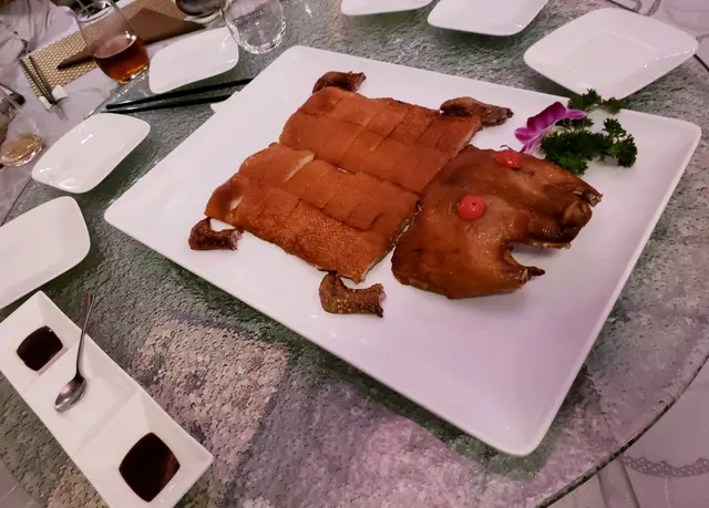 大鄉里出城首次踏足大舞臺!位侍應阿嬸勁似大雄老母,因為近期有叮噹大電影上畫所以演繹潮流尖啄?我要求白酒,大雄老母比支汽酒我稱係白酒,您識唔識架?我要白葡萄酒,激死我!非常不專業,似茶記兼職,我都明白現時飲食界招聘困難。檢視一下餐單,全中文不太懂啊!高級餐廳何解不是中英文對照?鴻運脆皮乳豬、京蔥雜菌大蝦球、百花炸釀蟹拑、瑤柱金錢伴瓜脯、紅燒花膠雞絲翅、清蒸海石斑、蠔皇鮑魚扣花膠、脆皮吊燒雞、砂鍋海鮮炒飯、參菇海味伊麵、意式泡芙酥、蓮子百合紅豆糕,滿意滿意豐衣足食!全部菜色除甜品外都係由侍應分碟續份端上,唔怕無得食唔洗鬥搶又更加衛生!鴻運脆皮乳豬,配上白麵包大愛!夾饃還是饅頭來的?酒店式服務,所有佳餚分好一份份才送到賓客面前,夠衛生不用搶,不過我食得快兼大食就無用武之地了!鬆軟熱熱的麵包夾著乳豬件入口,狠狠地大啖咬落去!靚靚乳豬可遇不可求,薄脆豬皮搭著咸鮮滑滑瘦肉,油潤而不肥膩!京蔥雜菌大蝦球,不是蝦爽鹽醃明蝦,係天然爽彈充滿海蝦鮮甜味道巨型蝦碌,高質吸引!配菜蜜糖豆、百合、青椒全部爽脆香甜,全部美味出色!百花炸釀蟹鉗,每次飲宴都令我滿心期待!鬆化熱熱新鮮炸起,香噴噴咬落索索聲,輕煙四溢。鮮蟹肉鮮蝦膠鮮味非凡,巨蛋彈力十足!瑤柱金錢伴瓜脯,整舊瓜脯釀入口,嘴內爆破,汁液激射!節瓜煨得充滿高湯,滑滑爽甜一再回味。還有原粒味濃乾瑤柱,海味味出眾而濃郁。巨形特厚花菇滑嘟嘟,菇味強烈,餘韻久久不散,完成度極高!紅燒花膠雞絲翅,傳統正宗食法只食原味,享用完才呷點醋清清味蕾。湯汁晶凝剔透,雞湯香濃黏膠,翅針脆花膠爽,百感交集好味道!蠔皇鮑魚扣花膠,超特濃鮑魚鮮味,滑滑有咬口而帶黏,炆得極入味啊!大大厚厚半透明花膠,蠔汁味鮮完全滲透,膠黏滑溜拍爛手掌!品嚐完濃鮑濃膠,即來片爽甜生菜清新一下。清蒸海石斑,先來厚實啖啖肉特濃魚味的背脊肉,再來特滑魚肚肉,魚鮮味飄逸無得頂!難得每個部位都嬌嫩不鞋。脆皮吊燒雞,脆脆雞皮有趣可口不肥膩,醃味得宜不過咸,整體不過不失。參菇海味伊麵,不吃芽菜不吃韮黃,比麵還要多,不喜歡!砂鍋海鮮炒飯,炒飯好好味!搞到想添食多兩碗。叫大紅老母侍應幫我攞多碗炒飯,完全唔理我,當無件事!唔識聽廣東話?還是我太斯文太善良?意式泡芙酥,不吃甜品的我都感到驚喜!熱熱脆脆的外層包著凍凍的忌廉餡。蓮子百合紅棗糕,綿綿質地,清甜紅棗不膩不濁。…查看更多