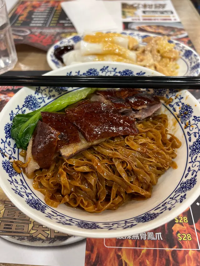 尖沙咀都好多茶記平民嘢✨燒味相信係好多人嘅 comfort Food價錢又平✅呢間連鎖但好有質素 而且地方乾淨企理位置方便😛❣️雙拼燒味飯 叉燒燒腩仔 $54門口已經見到掛起嘅燒味好吸引 呼喚緊我🤣 燒腩仔好脆好脆 肥瘦相間有鹹香 加啲黃芥末超正💯叉燒專登叫咗肥啲就唔會柴🤭 仲有燶邊添✨有得免費轉米粉瀨粉 搭條菜就冇咁Heavy✅❣️原隻煙燻燒鵝髀撈麵 $108呢個配搭好有特色又地道😆 粗麵麵質好Q彈感覺用咗好多蛋🍜鵝油撈麵加咗燒鵝油同秘製豉油🦢 睇落立立令 又香又好食😋燒鵝髀貴啲就當然 呢度真係比足一隻巨髀 🦆仲搭咗啲肉 值得食‼️💯 用咗荔枝柴有煙燻嘅味 皮脆肉嫩入味 我唔係燒味專家但覺得好好食‼️❣️鵝油菜心 $18菜心揀得靚好甜冇渣 唔會好油 價錢合理🥬❣️檸檬茶 奶茶 +$5…查看更多