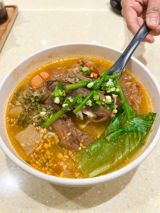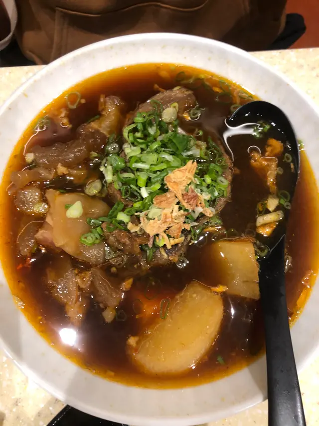 剛從台灣回來的我,突然有點想念台灣麵,而之前行HANDS商場時有留意到這間小胖台灣麵,環境不錯人流亦多,便決定帶太太來試試😊✏️位置(9/10):商場外圍地舖,旁邊就是巴士及輕鐵站,很方便✏️環境(8/10):想不到面積不少,座位多亦感覺舒適✏️服務(8/10):掃碼落單很方便,上菜比想像中快,侍應很有禮貌✏️食物(9/10):台灣麵味道比想像中還好,絕對會再來🌟招牌三寶牛肉麵 - $82有牛腩、牛肚及牛筋的三寶麵,紅燒湯底微甜香濃,麵質幼滑,十分入味。三寶中最驚喜是超稔口感的牛肚,一咬即斷;牛腩亦煮得夠稔,啖啖肉亦無根;牛筋則有點煙韌,但我卻很喜歡🥰🌟夜市鹽酥雞 +$16跟餐小吃,炸得香脆,啖啖肉的口感,感覺不錯😘🌟古坑冰咖啡 +$14跟餐加配來自台灣的咖啡,香中帶甜,比較順口😃🌟麻辣半筋半肉紅燒牛肉麵 - $80同樣有軟稔的牛腩及軟滑適中的牛筋。湯底更是驚喜,在紅燒湯中加入麻辣,不會太辣但卻非常香濃,味道提升一個層次,喜歡吃辣的真的要試試😍🌟台灣香酥骨 +$16香酥骨有點酥軟,亦有豬肉香,帶骨的肉就是好味道😉🌟鴨屎香手打檸檬茶 +$15口味清新,檸檬味突出卻不澀☺️🏠小胖台灣麵(屯門) 📬屯門屯門鄉事會路2A號愛定商場(H.A.N.D.S) A區1樓A122號舖…查看更多