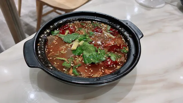 落雨濕濕想食濃味嘢,如果在中上環的話,多數會揀呢間。因為它除了車仔麵有好多餸的選擇外,湯底方面有少有的麻辣和水煮。*水煮魚配上湯米線*。賣相不俗,魚肉份量十足而且非常嫩滑又無骨,雖然小辣都幾辣,但因為上湯米線是分開上的,所以可以按自己口味添加適量的水煮辣湯。$69吃得很滿足。*麻辣鴨血*。表面看和水煮魚好相近,但這個加了蒜蓉,把滑溜的鴨血和蒜蓉一同放入口,非常惹味。*車仔麵加麻辣汁*。先喝一口湯時覺得湯底略鹹,但拌勻後再試就吃到花椒的香味,加上餸和麵後就不覺鹹了。其中極品牛腩條必食,軟腍得來有牛肉味;黑松露雞肉水餃也很好吃,不過只得一隻有點孤寒;反而金錢肚最抵食,份量不少。*醉雞翼*和*咖哩魚蛋豬皮雙拼*味道普通,可以再「醉」點和再「咖哩」一點,要吃小食的話還是推薦麻辣鴨血。店內光猛乾淨,員工有禮,想食濃味辣味的可以試下,至少食完不會口渴。…查看更多