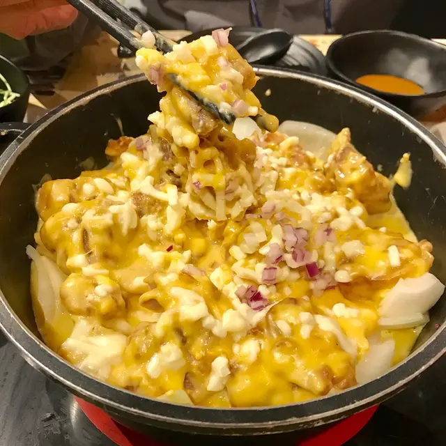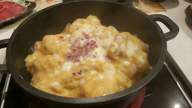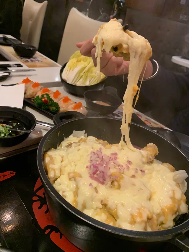 哩次係我地第一次食米走雞🐓🐓,一個唔小心嗌到成台餸🤫🤫,飽到上心口🤰🏻🤰🏻🤰🏻。(如果兩個人食,可以半份半份咁嗌)🧀黃金芝士雞煲🐔 (小)($178)雞煲有兩款:芝士🧀、麻辣🌶。我地就嗌左芝士雞煲,雞煲用左兩種芝士:應該係車打同mozzarella👀👀,仲有得揀濃度添。食@之前店員特別提醒唔好攪均芝士🤚🏻,要直接夾🥢🥢🥢起黎食先最好味。果然食到超濃芝士味,而雞肉全部都係用雞脾肉🤓,食落啖啖肉口感又滑,超滿足。~👧🏻:食到後面都有少少漏🤔食完雞煲之後緊係要加水打邊鍋,不過加左水,味道淡左好多…🤭配料:👉🏻🦐🦐蝦滑($88)非常出色嘅蝦滑,食到材料好新鮮,有鮮味仲又滑又彈牙👅👅👅。👉🏻💡鮮炸響鈴($52)即叫即炸,超脆超大舊點湯食一流🌞。👉🏻🐄🐄特級雪花肥牛(小 $158)& 🥬生菜(一份 $44)正常發揮啦,肥牛大大塊,菜都新鮮爽口。👉🏻❄️蜂巢冰豆腐(半份$24)同樣地都係好大舊而且好吸湯,如果個湯可以再濃味啲就好了。👉🏻🍠紅薯粉($16)份量比想像中多,口感彈牙,唔洗淨係食餸咁單調🤪🤪。飲品:🎍竹蔗矛根🎋(壺 $68)非常清甜🧃,啱哂食熱氣野飲同解膩,十分推介🌟…查看更多