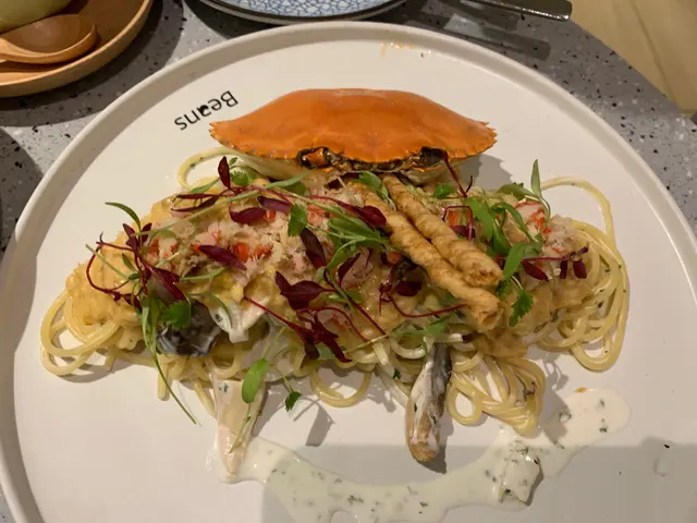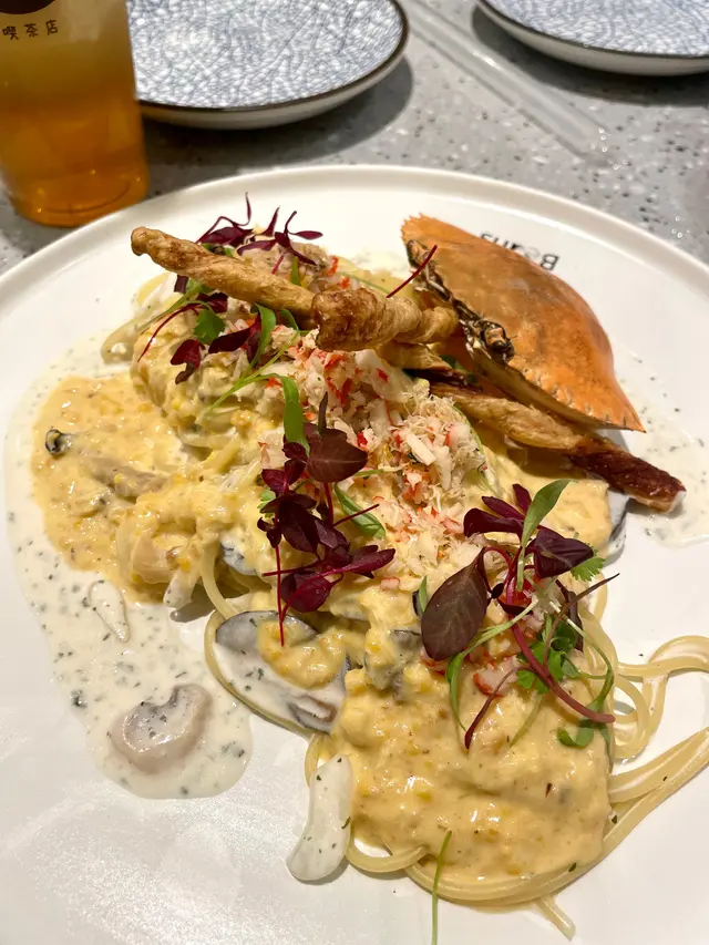 一入門店員會叫你選鍾意嘅消毒液味道,隨便揀咗一個,都幾好聞~因為食early dinner,叫咗個黃金蟹肉意粉,份量對女仔來講應該剛剛好,男仔就可能唔夠食~味道非常之唔錯,預咗會有飽腹感,但因為份量適中,所以都恰到好處!另外叫咗我至愛嘅焦糖單骨雞翼,呢個真係多多都食得落,好好味😋佢仲可以畀你叫「我想和你無所事事」嘅飲品,我叫咗芝士奶蓋四季春,少甜少冰,不過不失~唯一少少美中不足係,我碟意粉食剩少少時,侍應已經用迅雷不及掩耳嘅速度收走隻碟,建議下次節奏可以慢啲啲,畢竟當時都唔係最繁忙時間🙏🏻…查看更多