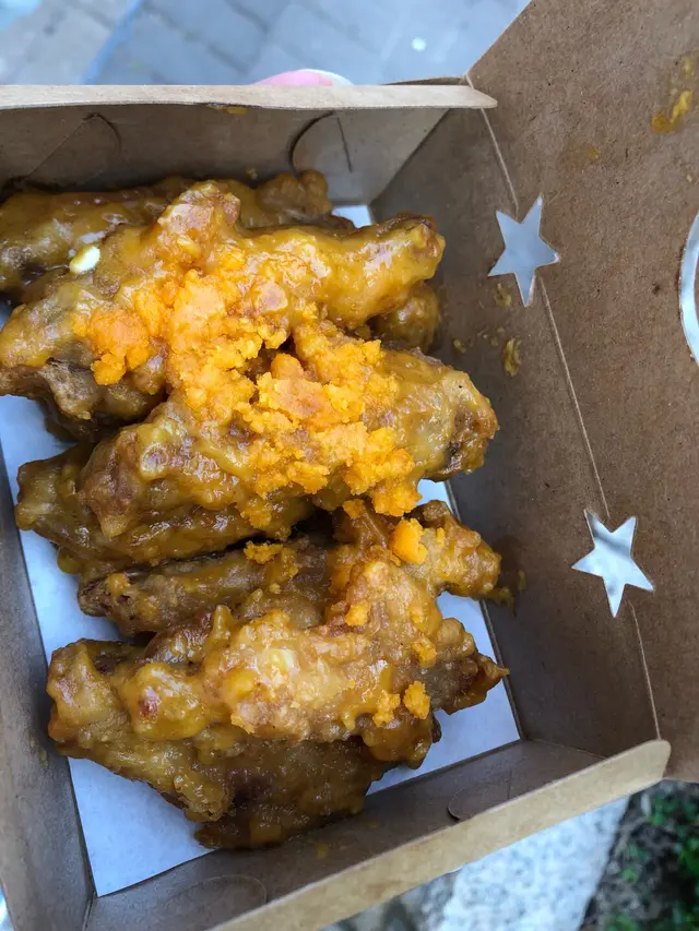 -依間髀魔真係幾受歡迎👏長期都好多人排隊!路過聞到好香~-黃金魔翼🤩($35) (鹹蛋黃醬)今次就點左鹹蛋黃醬的單邊雞翼😗食落幾方便😍啖啖肉,外脆肉嫩😎外皮好酥脆又唔算好厚粉(*´◒`*)而且食落都幾香鹹蛋黃醬😍雖然食完好熱氣,但好好食♡´・ᴗ・`♡———————————-Name🏠:髀魔-雞髀第一店 (福民路)Location📌: 西貢福民路58號高富樓18號地舖價錢💰: 黃金魔翼($35)…查看更多