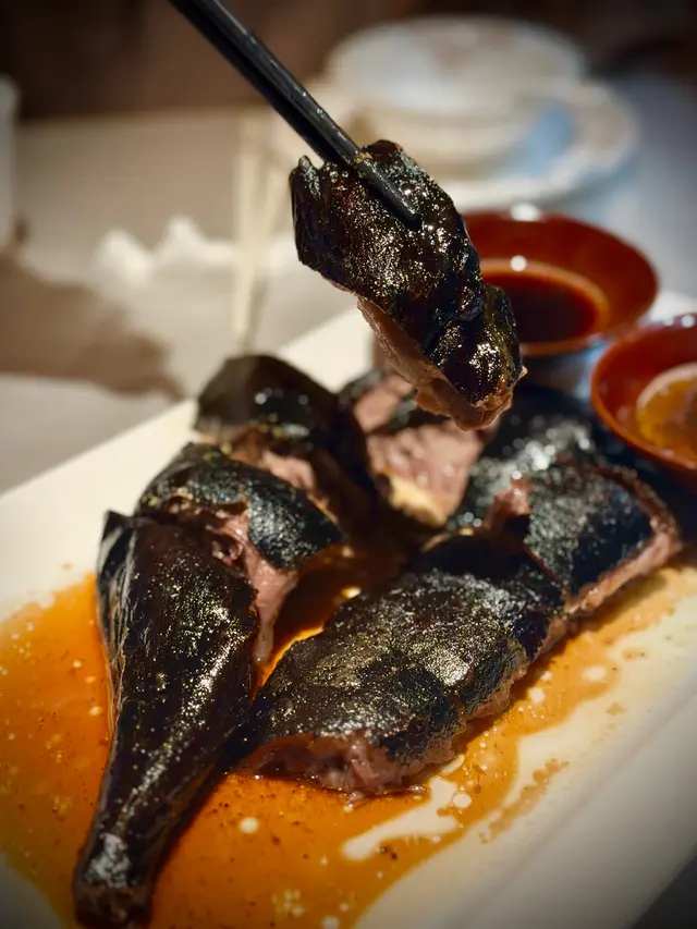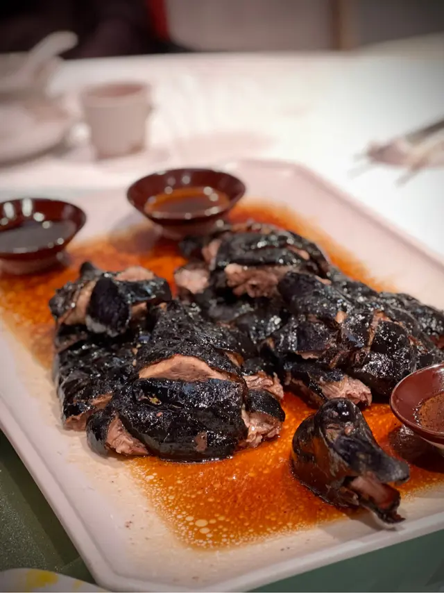 朋友的推介,到酒樓一嚐黑色燒鵝。鎮店之寶黑松露燒鵝當然要點,燒鵝的皮果然脆如玻璃,鵝油之中滲透出淡淡的黑松露香氣,正所謂相得益彰,互相揮影,誰都搶不了誰的風頭!鵝肉柔嫩有緻,啖啖有汁,不愧為名物!豉椒炒蟶子的豉椒非常出色,廚師絕無手軟,味道相當激烈,可以襯托出蟶子的鮮美,而且用來佐飯真是一絕!蟶子肉爽脆,一點也不靭,我們都給讚。小炒王的食材包括有吊片、蝦乾、銀魚、韭菜花、腰果和菜甫,師傅炒得勻稱有鑊氣,突顯出每樣食物的風味。我們最喜歡鹹鹹香香的菜甫,令整碟菜餚直接升呢。黑色燒鵝的確特別。…查看更多