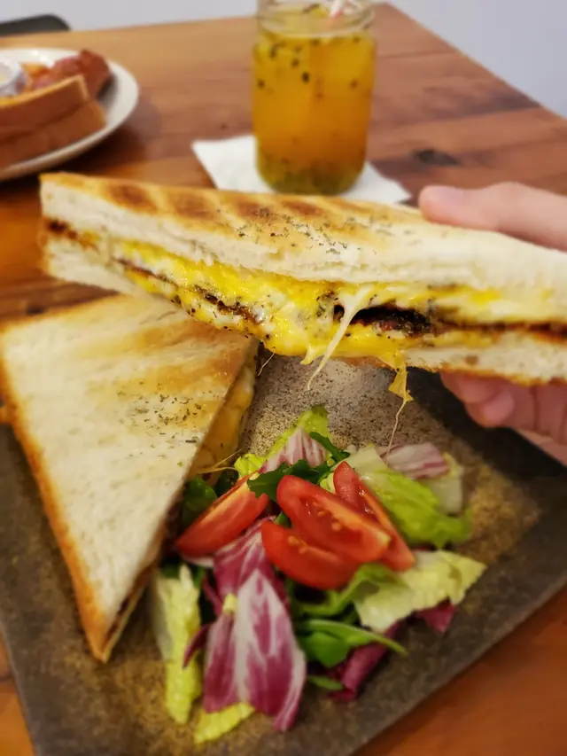 黑松露芝士三文治($128 套餐包一杯 $58飲品)本身我就唔係咁鍾意食三文治🥪因為成日都覺得好dry好寡🌚但辦館嘅三文治真係好出名🧀一上枱就俾流出嚟嘅芝士吸引😍會唔會太邪惡😭😭😭個包仲要焗得岩岩好 食落又脆又唔會過燶中間嘅芝士同黑松露仲要溶埋落塊包上邊😳😳一咬落去勁香勁重松露同芝士味😍超好食呀😭😭