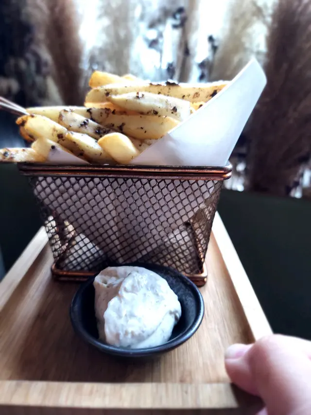 📍地址:旺角彌敦道575號Ladder Dundas 10樓✿😋味道😋:3/5✿🏙️環境🏙️:4/5✿🤵🏻服務🤵🏻♂️:3/5✿👀賣相👀:3/5✿💰價位💰:3/5↠⏰時段: Tea 16:00 ↞ ❀❀ 環境 :樓上cafe,以乾花為主題,加上牆身有壁畫,不過座位唔多,環境算細。🍽❝ 經典 All Day Breakfast ❞ $128❀ 三文魚,煙肉,香腸,牛角包,炒蛋,車厘茄,薯角,烤菇,沙律菜☞ 呢個ADB份量夠大,沙律菜上面淋咗啲黑醋汁,仲有小小石榴喺上面,都幾清新;另外,烤菇size就比較細;整體都幾好。🍟❝ 黑松露薯條配黑松露醬 ❞ $68☞薯條喺粗薯條嚟,上面仲有啲黑松露碎,另外配埋一個黑松露醬,都幾抵。🧇🫘🍵❝宇治抺茶· 紅豆· 自家窩夫 ❞ $85☞ 窩夫餅底不是煙韌果種,蛋香味都無乜,上面淋咗糖漿,加埋紅豆都幾甜,雪糕就無乜抺茶味,個人認為麻麻。🥛🍵❝ 鮮奶焙茶 ❞ $56☞ 呢杯焙茶個拉花好靚,焙茶味都夠濃,餐牌寫住用丸久小山園嘅抺茶調製,面且寫明甜度不設加減。…查看更多
