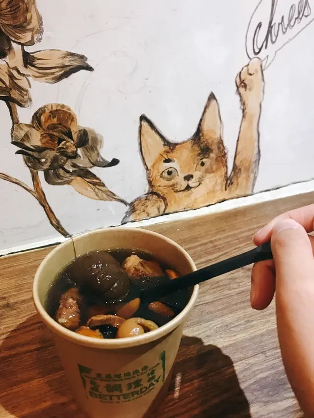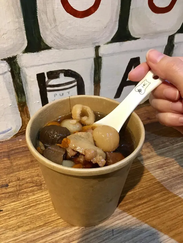 同朋友行完元創坊於是在附近周圍看下D特色小店,之後我地發現左呢間湯譜!記得之前看雜志有推介過於是就入去試下。小店環境令人感到舒服和放鬆,飲湯的位置仲有壁畫十分可愛。餐廳的湯水有唔同的款式,而且將材料個功效一一寫明,令客人一目瞭明。我地一人叫左一碗湯(黑蒜螺頭燉湯和椰子燉雞湯),裏面的湯料都好足!椰子燉雞:湯色很清,椰仔味道很出燉特別的「香濃」及清香。燉特別的「香濃」。這個椰子燉雞湯不但可以美容,而且營養很豐富!係滋補養生的靚湯。呢個係朋友點的黑蒜螺頭燉湯,這個湯的黑蒜的味道濃郁且帶甘甜。黑蒜肉身純黑,口感軟腍而且營養價值很高!有助強身健提。小店除左滋潤湯水外原來仲有咖啡,點心,粥和蒸飯等等!選擇多多令人意外。…查看更多
