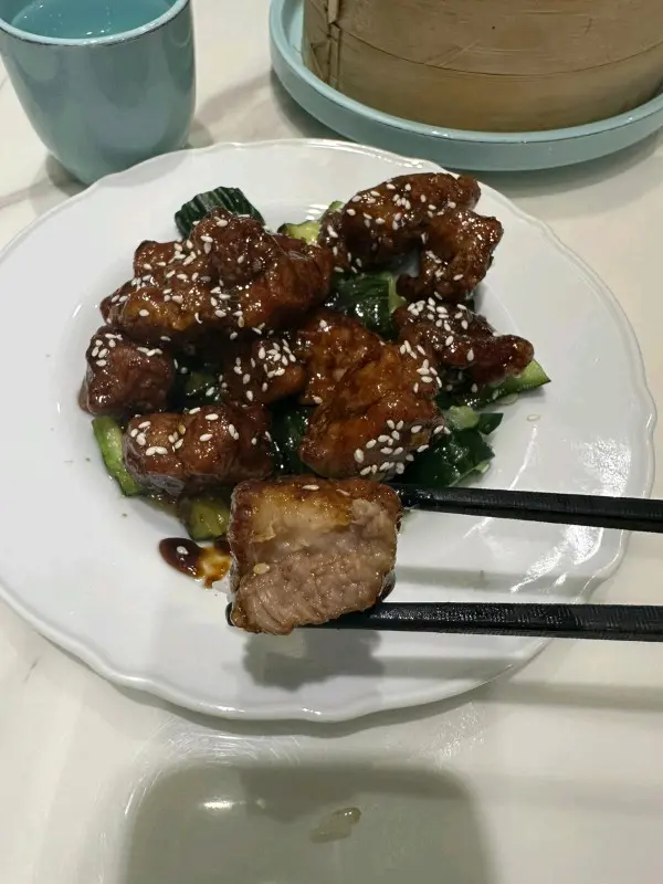 五一黃金周和家人留港消費,自小店開張已聽聞不少好評便特意到訪,但當日中午12點到店居然幾近全空。餐廳環境舒適,對比附近其他店舖座位闊落,店員招呼亦勤懇,第一印象不錯。假日也提供$58起的午市套餐,價格實誠。------------------------------✨$60✨黑醋骨客飯香氣十足,個頭適中入口啖啖肉。醬汁比例調得出色,鎮江醋香和醬香兼備,加上薄脆的面衣絕對是白飯小偷。唯獨不太明白使用拍青瓜墊碟的用意,如果是為中和油膩感,放在碟邊更適合,現在反而吸收了多餘的油脂,並混雜了不太融和的蒜味。✨$72 ✨銀芽鱔糊客飯同樣分量絕不欺場,熱氣騰騰充滿鑊氣。雖然鱔肉比例多但品質不太新鮮,肉質欠爽彈亦有不少細骨,不過以此價格實在難以期望可以有新鮮黃鱔。銀芽脆嫩火候剛好,反而是因調味上五香粉比較霸道而扣了分。加$5轉配的菜飯發揮正常,每口白飯都拌有小棠菜粒。✨加配$18✨涼拌海蜇海蜇質感爽脆不會橡筋,只是調味單一麻油為主,如添加少許陳醋會更有層次。✨$58✨豆沙鍋餅上海菜的標杆除了濃油赤醬,包點也是不遑多讓。雖然未有空間嘗試小籠包但甜品的Quota總是有的,可惜終歸是浪費了。即製的鍋餅縱然滾燙但異常”冧油”,邊緣餅皮入口是尷尬的硬實,中間卻又軟塌。豆沙不會太甜但香氣欠奉,比例失衡最後勉強吃幾塊也無奈投降。------------------------------因外賣自取有九折,一個月後又外賣了黑醋骨客飯,水準依然出色,遺憾加點的生煎包再一次中大伏,面皮極厚且死實,肉餡少得可憐。在包點一環餐廳可謂完敗,整體偏科鑊氣小炒,在上海菜這條賽道上難以突圍,餐廳似乎亦意識到這點所以以友善定價補償。作為大角咀街坊亦不希望餐廳要黯然離場,會再給予機會回訪,但只焗限於小菜和湯麵類,期望小店在發麵和麵皮收口等手藝上多花心思,為企穩陣腳打下堅實基礎。…查看更多