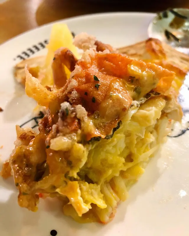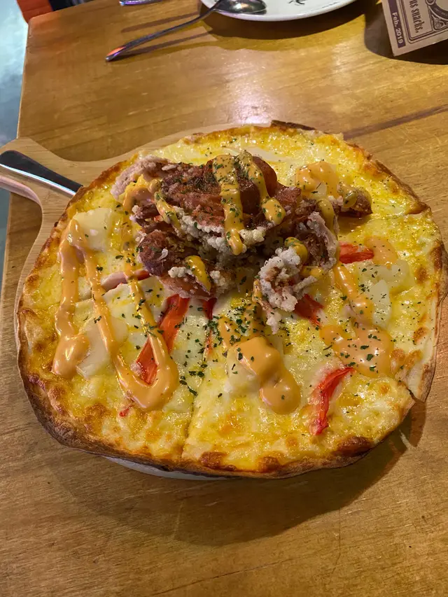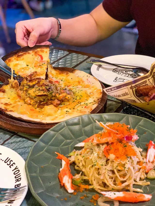 呢間餐廳我之前都食過一次,覺得裝修非常有玩味,加上嘢食嘅名都改得非常特別,又幾好食,所以今日拉埋男朋友一齊食😆餐廳好出名,吸引唔少人嚟食,我食嘅呢一日6:15就full house喇,如果大家想食一定要早少少嚟等位或者book定位~第一個叫嘅小食係芝士粉薯條 ($45) 🍟明明上次嚟食係直薯條嚟🤣今次變咗曲薯條,不過同樣好痴到啲芝士粉🤤記得上次個牛油果pizza都好好食,今次都有叫pizza,就係點解個個都叫軟殼蟹比薩架?($138) 🍕個賣相真係好靚,因為佢係成隻軟殼蟹撻上個pizza度🤣估唔到隻蟹竟然都仲有膏,切開一半嘅時候都咇哂出嚟,但我相信係好難蟹連pizza一齊食嘅😂而pizza配料比較普通,不過啲芝士比想像中多好多,非常邪惡🙈男朋友最鍾意食意粉,所以叫咗有蟹go又有蟹肉的蟹蟹蟹意大利扁麵 ($128) 🍝又係蟹!呢個意粉除咗有一絲絲蟹肉做個汁之外,仲有蟹棒同埋兩隻小蟹鉗🦀醬汁好creamy,加咗少少辣嘅調味,意粉軟硬亦都非常適中👍🏻我哋仲叫咗一人一杯飲品,男朋友叫咗香蕉朱古力奶昔 ($48) 🍌估唔到香蕉味係咁出,上面仲有一塊香蕉做裝飾😚奶昔唔算好濃同滑嗰款,都ok嘅~而我嗰杯係天然紫薯唔太甜 ($48) 🥛個名真係改得好好,因為呢杯飲得出真係冇另外加糖,好似飲緊打溶咗嘅紫薯再加奶咁,好濃郁😋食第二次都冇令我失望,絕對會再過嚟幫襯👍🏻…查看更多