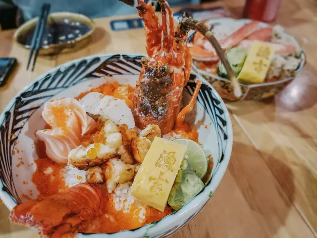 提到九龍城自然會想起泰國菜,不過今次朋友帶我來品嘗海鮮丼。裝潢以淺木色為主,牆有一幅漁夫捕捉海鮮的壁畫,意味著餐廳用料新鮮。 名為海鮮丼專門店,開宗明義主打海鮮丼,供應十款以上的丼,客人亦可因應自己的食量去選擇飯量,相當貼心。亦有小食和刺身提供。龍王丸 ($238)原隻熟龍蝦外觀非常霸氣,視覺看起來超澎湃,裡面還有三文魚、帆立貝、左口魚裙邊、三文魚籽和蟹籽,滿滿一大碗,賣相非常吸引。三文魚厚身肥美,蟹籽份量極多,與醋飯一起吃,更添口感。龍蝦肉質彈牙扎實,肉味道濃郁。帆立貝經火炙後,入口帶有一陣燒烤的味道,口感先紮實而後柔軟。漁吉特選丼 ($198)一碗有齊多款魚生,包括三文魚、油甘魚、產地直送鮮魚、星鰻、帆立貝、三文魚籽、櫻花魷魚、赤蝦、蟹籽、左口魚邊,相當豐富,最適合心大心細或有選擇困難症的朋友。各種魚生鋪滿了整個飯上面,讓人食指大動。左口魚邊輕輕火炙過逼出油脂,香口滑嫩。 櫻花魷魚爽口有嚼頭,口感豐富有層次。燒鱈魚片 ($38)每一口咬下去都會發出脆口的聲音,香脆可口。…查看更多