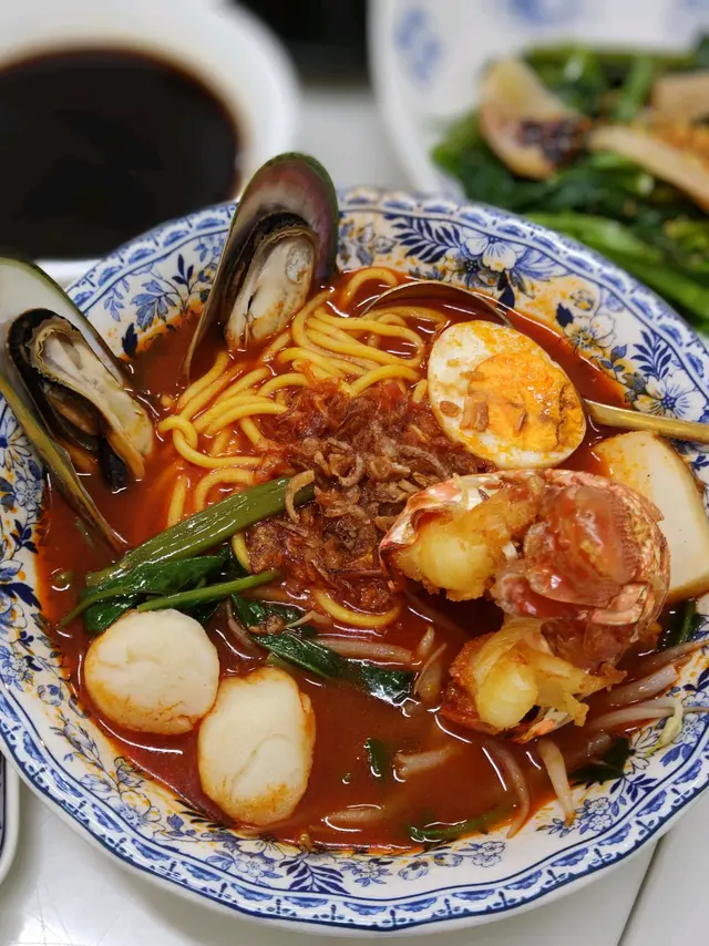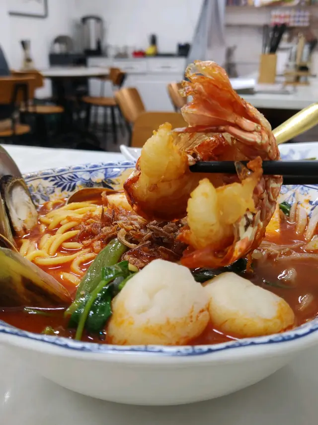 我對上一次黎大圍係幾時呢?我已經忘記咗!今次黎既目的係飲肉骨茶😏大圍街坊話近美林村既油站對面有間馬來西亞🇲🇾餐廳既肉骨茶好出色,仲係我既口味(好似真係好了解我咁喎!),講到咁無理由唔去試下架麻~早幾日收工唔想煮嘢就即慶入大圍,小店望入去有4張枱以為細細間,坐底睇下餐牌時見到其他人行上去原來有閣樓呀~入下一個又一個,令我好好奇💭上點係點樣。。。講返正題先,見到佢有個限定龍蝦尾海鮮濃湯蝦麵$128,仲要係加強版特濃蝦湯底!期間限定!每日限量20碗!龍蝦尾、魚片、帶子、青口,睇落已經好豪華,濃郁嘅蝦湯底加入海鮮同鮮茄製成濃湯,湯底好濃郁蝦香而且超鮮甜,油麵底仲掛哂湯,非常滋味!🤤豆卜金菇肉骨茶$52因為主菜肉類比較多,肉骨茶我就點豆卜同金菇好了,可況醉翁之意不在肉,茶才是重中之重!天呀😱朋友仔真係了解我架(可能係我平時太煩膠成日話唔夠味🤣)~濃濃既藥材香,絕對係我最愛口味!飲左身體即時暖和左,好滿足!辣死你媽_配生炸雞全髀$92大大隻生炸雞髀配料有椰漿飯(我轉左藍花飯)、參巴醬、青瓜、花生、乾魚仔、著仔、雞蛋,藍花飯睇落好靚✨生炸雞髀雞皮脆到食薯片咁,肉質又夠滑滑,配料來個撈撈撈每啖飯都變得有口感同咸香🥰咖央牛油多士$38不得不點系列✨依個咖央醬無平時嗰d咁甜,而且比較香,同牛油平衡得幾好👍🏻魚仔醬蘿蔔糕$46可能就黎新年,我開始想食蘿蔔榚🤣魚仔醬代替左XO醬變得更加惹味!馬拉茶與馬拉啡 $22大圍真係越嚟越多美食,得閒大圍相見啦~😂…查看更多
