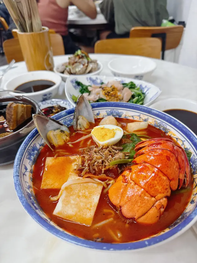 咖央多士首先上枱,烘得超級香脆,有咖央香又有牛油香,每回光顧都是秒速吃掉的。肉骨茶選擇了豆卜金菇,恰到好處的藥膳味道,豆卜非常入味,金菇爽脆,加上溫度足,感覺滋補。黃金奶油虎蝦雖然目測不算大隻,但口感爽彈,而且蝦的數量相當多。龍蝦尾海鮮濃湯蝦麵,豐盛的一大碗,不辣的,麵質超讚,整體賣相吸引!蝦尾扎實爽滑,有帶子和青口,足料美味,每日限量20碗。另外馬來西亞茶也值得點,茶底香濃,口感順滑。餐廳環境分上下兩層,光猛、企理、衛生。…查看更多