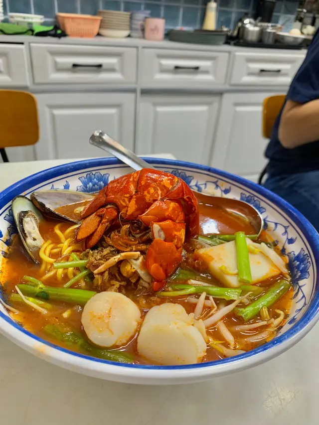 有咗屯馬綫之後去大圍真係好方便,一條線就到唔使轉車😎今次就嚟到呢間食馬來西亞嘅嘢食,唔好睇佢舖頭好似好細間,完全就係做到麻雀雖小但係五臟俱全🤣 睇嚟兜咗咁大個圈嚟到食都係值得㗎😛1️⃣ 龍蝦尾海鮮濃湯蝦麵🦞真係超級震撼‼️ 用手掌咁大嘅龍蝦尾去代替平時嘅虎蝦,第一次食咁豪華嘅湯麵,有少少懷疑到底係咪發緊夢😂 識食嘅話第一啖梗係試吓個湯㗎啦,完全係”嘩”一聲,好似飲緊西湯咁極之濃郁😛而且呢啲龍蝦尾、青口同手帶子食落全部都好新鮮,一啲都唔會霉霉爛爛😎 真係一碗超級豪華嘅湯麵🤣2️⃣ 辣死他啦配生炸全雞髀🍗上次食呢個生炸全雞髀飯就係配綠色嘅椰漿飯,今次呢間好特別有唔同款式嘅飯我就試咗藍色嘅藍花飯,即係將蝶豆花榨成汁煲飯,加埋配料參巴醬、豆角、椰菜絲等等嘅配料一齊食,Jeng🤪 佢哋除咗藍花飯之外,仲有得轉要豬油撈飯、椰漿飯、黃薑飯同白飯,仲有一款啱食😍3️⃣ 三層肉肉骨茶🥣咁出名梗係要試吓啦😋 呢度嘅肉骨茶有好多款,我就揀咗要呢個三層肉,邪惡得來好好食😎肉骨茶係將啲肉同埋中藥熬出嚟嘅湯,苦甘鹹匯聚於一身,既有藥香亦有肉香,仲可以蘸油炸鬼落去一齊食,掛汁更滋味🤭4️⃣ 咖央多士🧈上次食嗰個鮮牛油咖央多士實在係太邪惡啦,所以今次就唔要鮮牛油,淨係要咖央😛多士烘烤到又脆又香,中間嘅餡甜甜的,絕配😍5️⃣ 黃金奶油魚皮🐟炸魚皮好香口😋呢度嘅炸魚皮份量唔少嫁,我揀呢款仲配有黃金奶油醬,超邪惡但好好食💕 6️⃣ 美祿恐龍🦖美祿恐龍真係好好飲🤭 面層全部都係滿滿嘅美祿粉,仲會有幾粒蜜糖星星好特別😍…查看更多