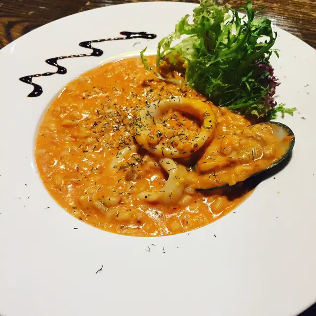 龍蝦忌廉汁煮海鮮意大利飯 $108如剛剛的意粉是清淡口味,這個便是重口味!海鮮分別有大蝦,青口,墨魚仔,十分豐富。龍蝦忌廉汁煮意大利飯燉到濃稠綿糯,意大利飯有加入芝士所以會比較膩。不過對於重口味的我,每一口都十分滿足